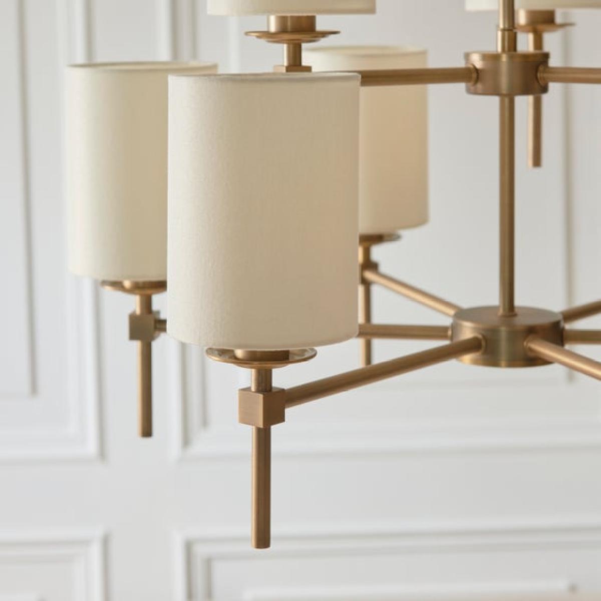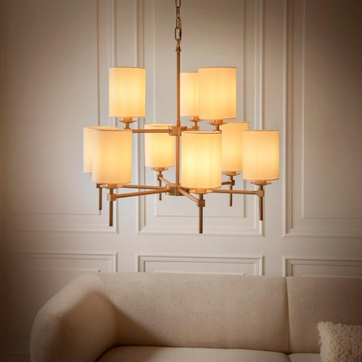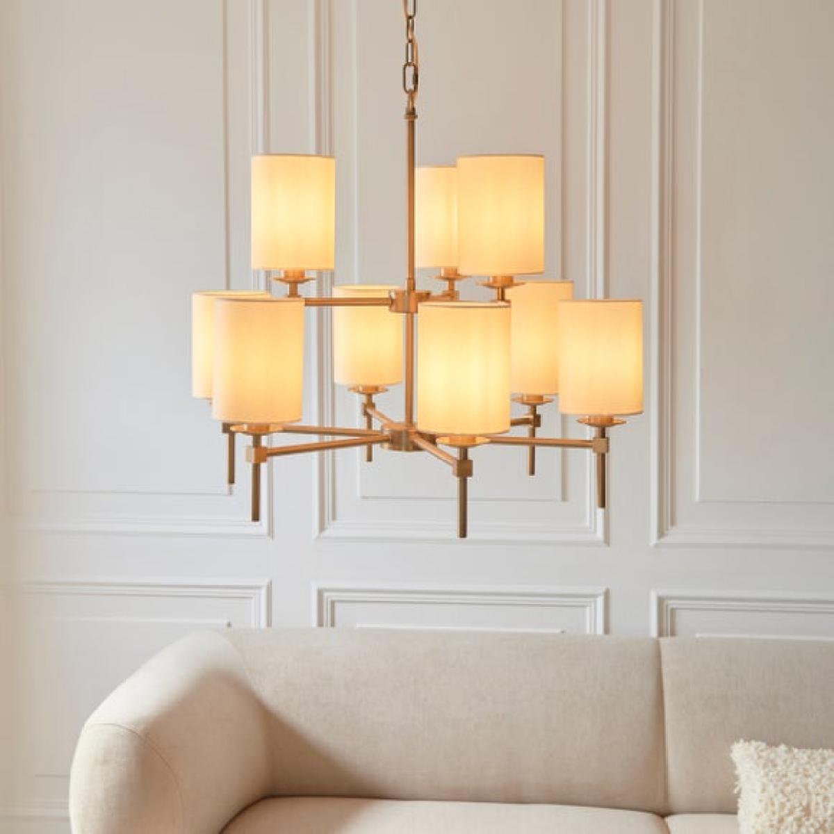 * Stylish Look & Design * Adjustable Height - Tailored Ambience * Dimmable Compatible - Requires Dimmable Bulb & Switch * Matching Items Available Make a statement with the Toulouse Pendant Light from the Lighting Edit Range. Finished in warm antique brass with nine natural faux linen shades, it offers adjustable height and dimmable functionality when paired with compatible bulbs and switches. Matching items available separately.