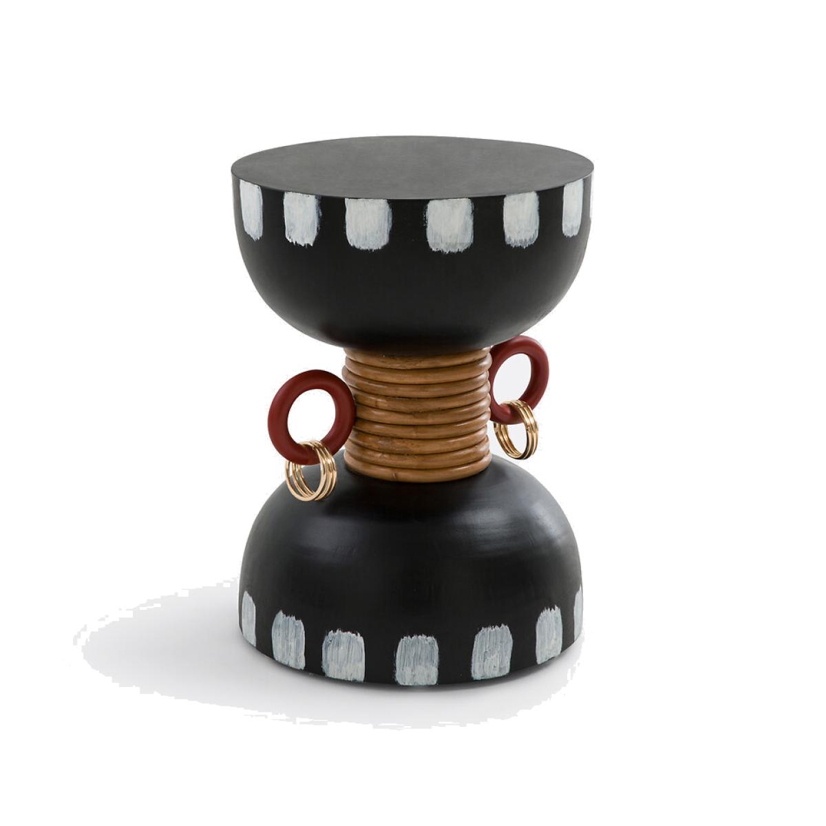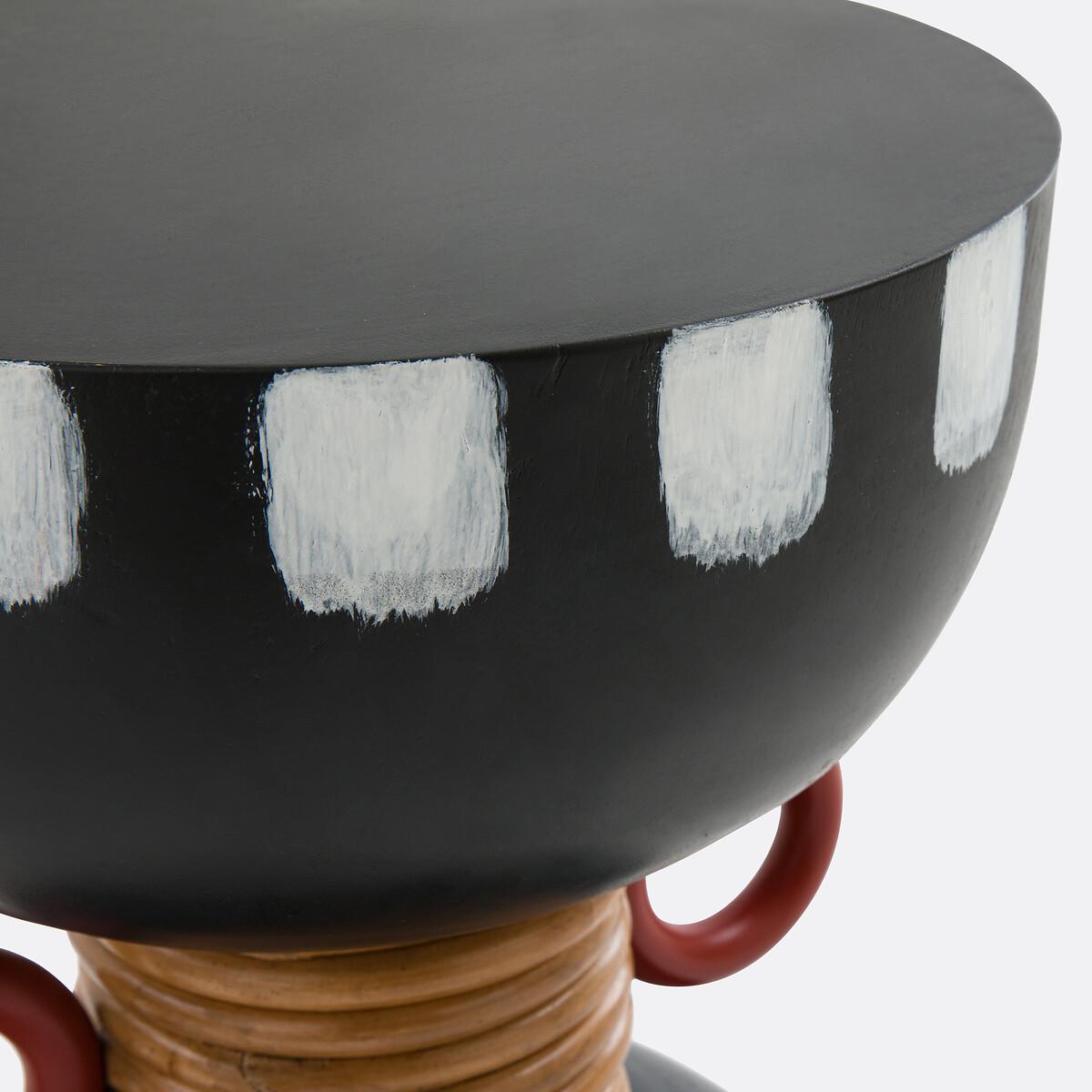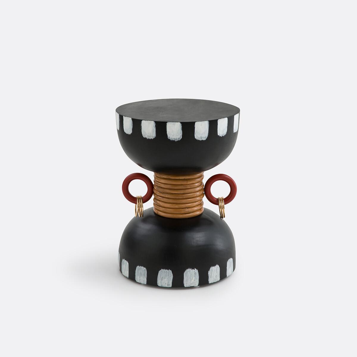 Eclectic and sophisticated, Mama Shelter X La Redoute Interiors is the result of the collaboration between the 2 brands' designers. A limited edition with limitless inspiration. A sculptural and original line, a neck sheathed with rings, two round handles in perfect symmetry: this is the Toumtamtoum-Toum side table. Let yourself be surprised by a tribe of design objects, inspiring and with a unique personality. Product Details • Structure in solid black-stained suar wood, white paint and nitrocellulose varnish finish • Natural-coloured tinted rattan core, nitrocellulose varnish finish • Steel rings, red tinted, nitrocellulose varnish finish • Decorative pendant rings in steel, gold tinted, nitrocellulose varnish finish • Polyamide gliders. Dimensions • Diameter: 35cm • Height: 45cmDelivery:. Sold pre-assembled. Available for home delivery. Dimensions and weight of parcel1 parcel • L37 x H48.5 x D37cm. 15kg