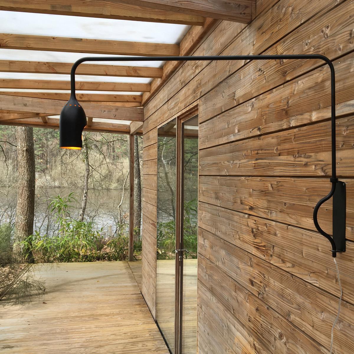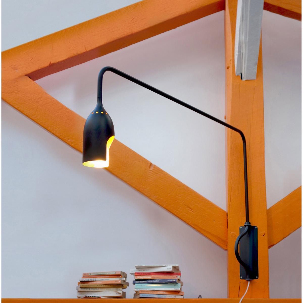 Tsé Tsé always share with us their very inspired and personal creations! This aluminum bracket wall lamp, swivel shade is black matt paint, and has a gold interior.