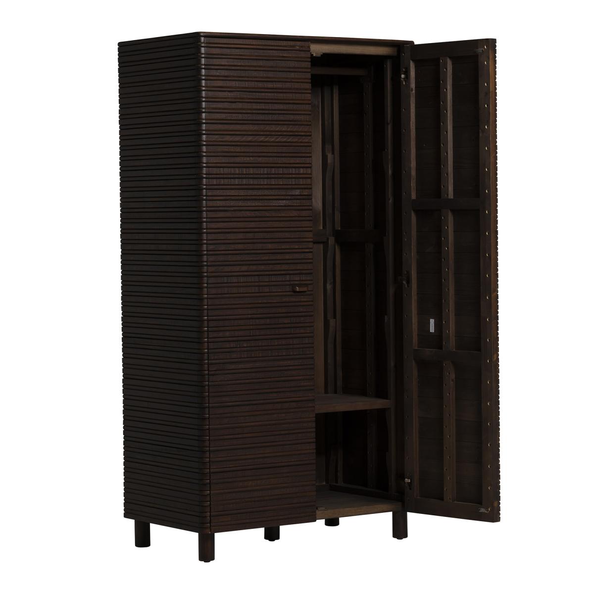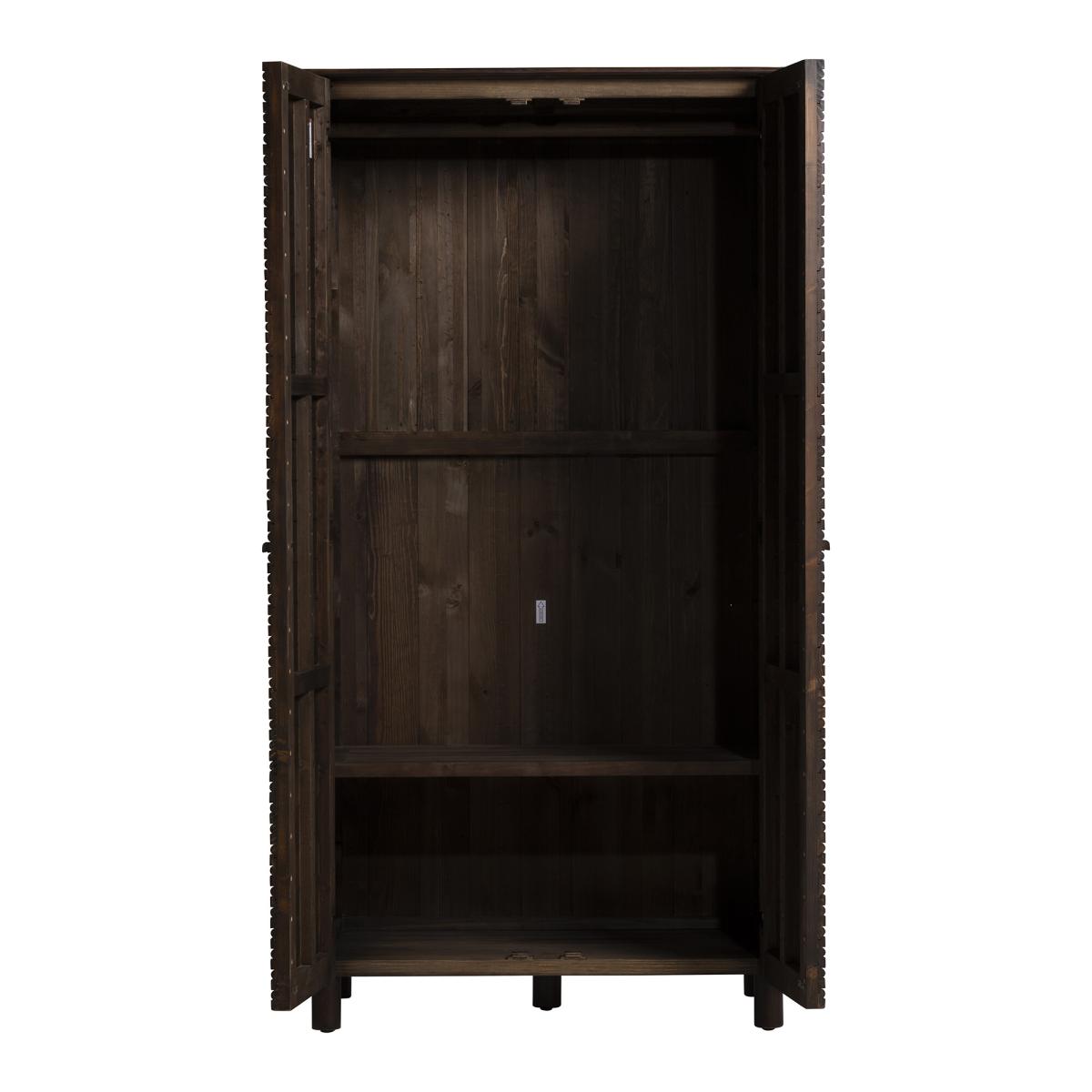 This 2-door wardrobe, crafted from reclaimed and recycled wood, showcases a rustic oak finish for a timeless aesthetic. Its hinged doors open to a spacious interior with a single shelf, ideal for organized storage. The eco-friendly design blends sustainability with enduring charm, making it a practical and stylish addition to your home. Perfect for bedrooms seeking a blend of functionality and character, this wardrobe pairs its sustainable craftsmanship with a classic appeal to enhance any space.