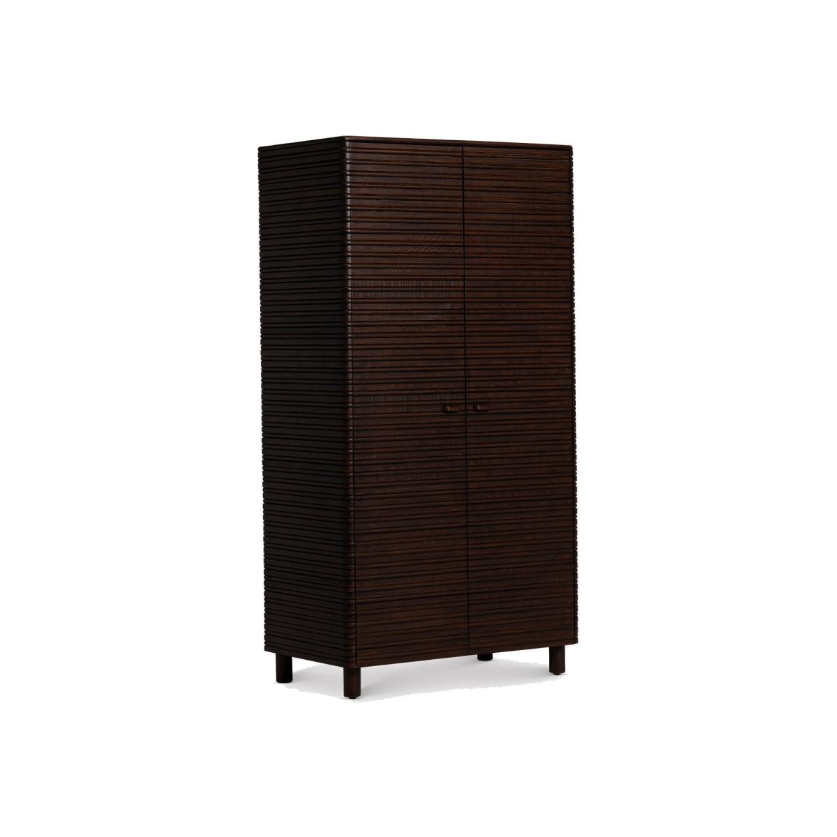 I’m a fan of the Tova wardrobe for its clean lines and subtle slatted detail, which brings just enough texture without overwhelming a room. Its slender legs and compact footprint suit smaller bedrooms, guest rooms or even a hallway alcove, while the warm wood finish works equally well in Scandi-inspired, mid-century or contemporary schemes. For styling, keep the top clear or add a simple planter and a framed print to balance height with softness. Inside, use matching storage boxes or fabric baskets to corral scarves, belts and off-season clothes. If you need extra hanging space, slim velvet hangers will help maintain that refined profile.