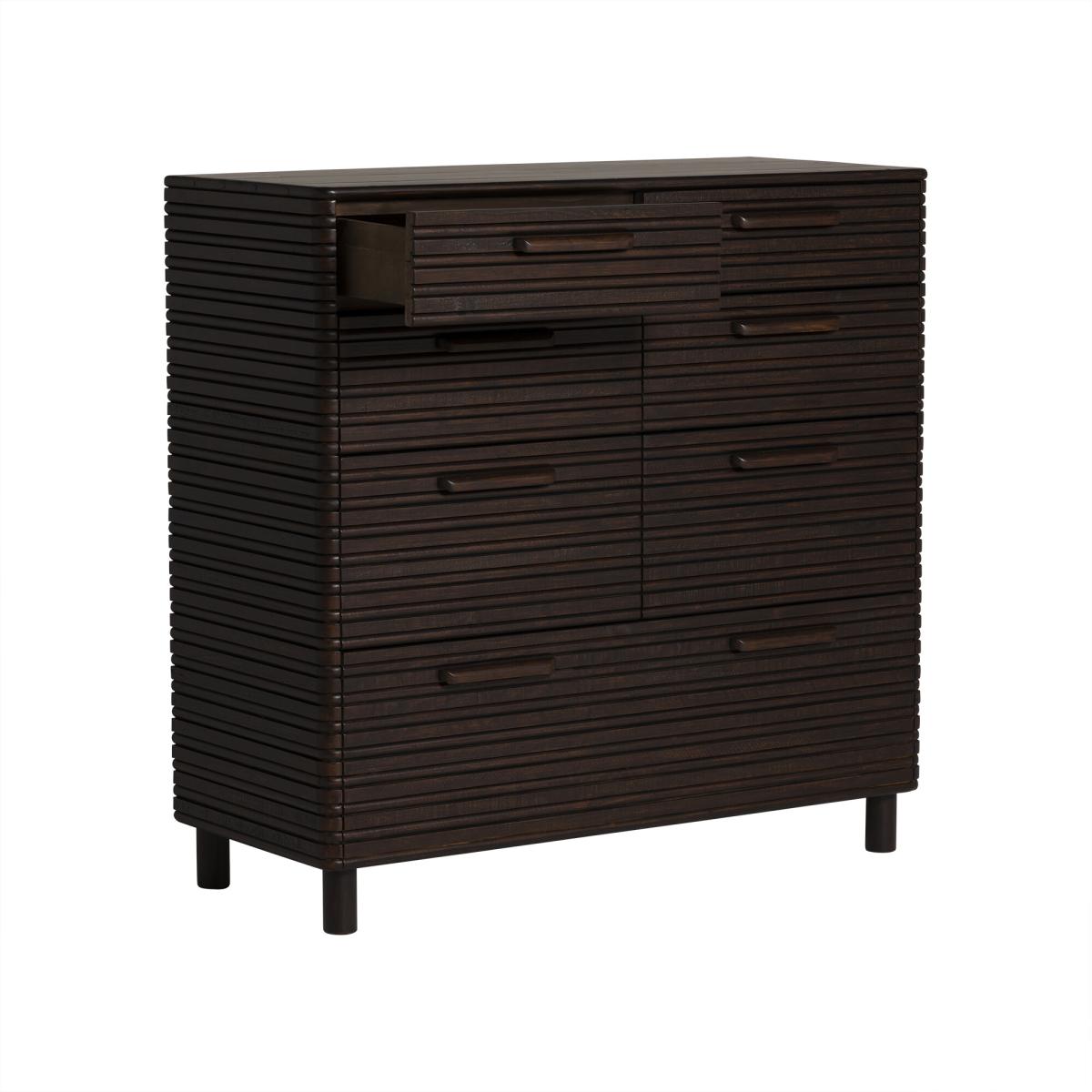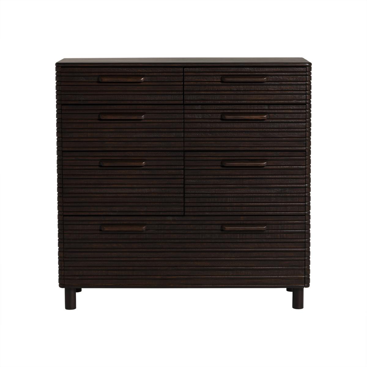 Bring timeless charm and eco-friendly craftsmanship to your space with this reclaimed rustic acorn chest. It features seven drawers, including variant size compartments for ample storage, while the reclaimed wood showcases unique character and sustainability. Perfect for adding warmth and function to any room, its rustic acorn finish highlights the natural grain, giving each piece a distinctive touch. The sturdy design ensures durability, while its stylish appeal complements classic and contemporary interiors alike. An ideal solution for stylish and practical storage needs.