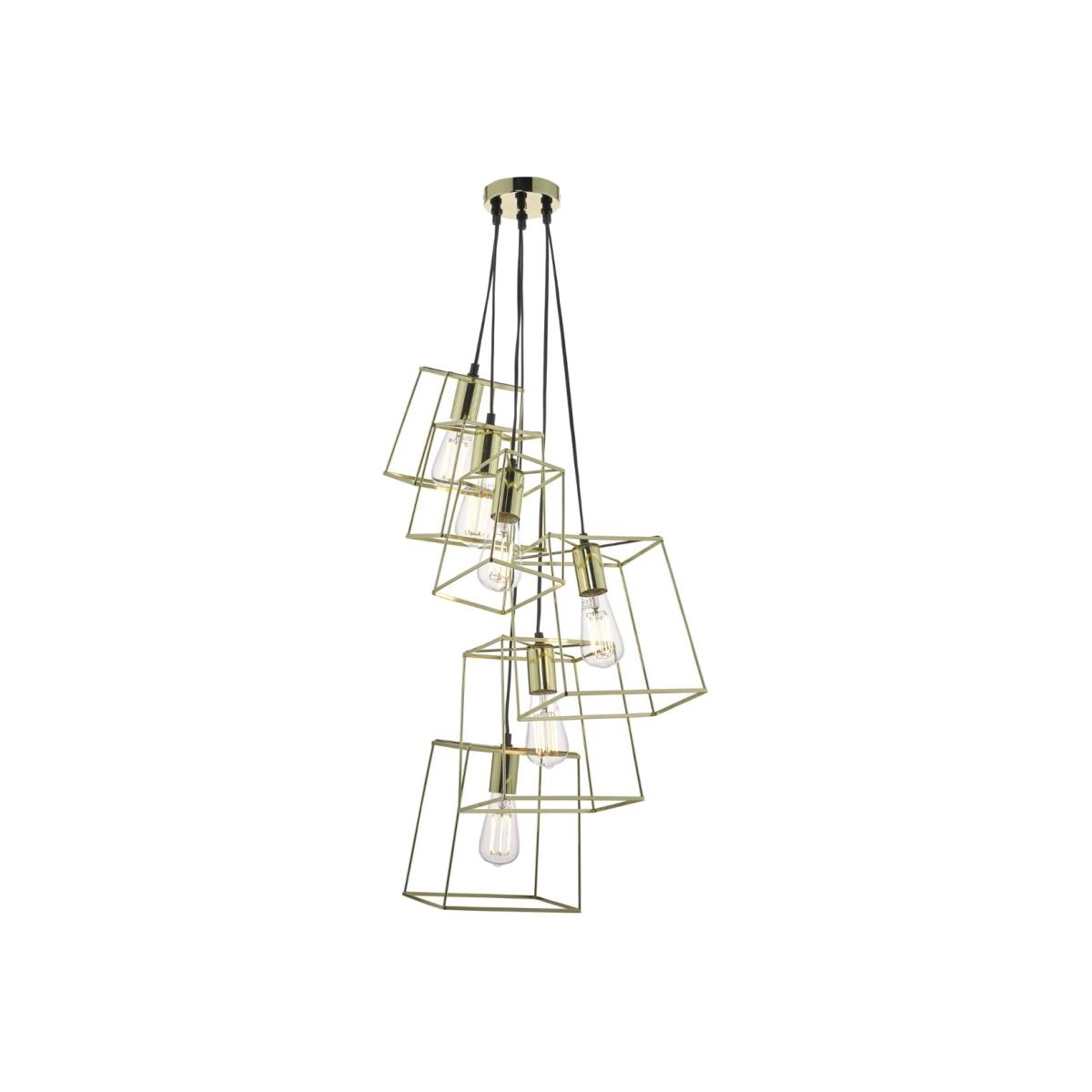 Industrial pendant ceiling light in gold finish. Make a statment to your living space with this industrial inpired ceiling pendant. The Tower 6 Light Ceiling Pendant is a cascading fitting, featuring a cluster of 6 cubes frames in a warm gold finish. We think this light looks best with a mixture our E27 4w LED Vintage light bulbs for a rustic, warm glow. Industrial pendant ceiling light in gold finish. Make a statment to your living space with this industrial inpired ceiling pendant. The Tower 6 Light Ceiling Pendant is a cascading fitting, featuring a cluster of 6 cubes frames in a warm gold finish. We think this light looks best with a mixture our E27 4w LED Vintage light bulbs for a rustic, warm glow.