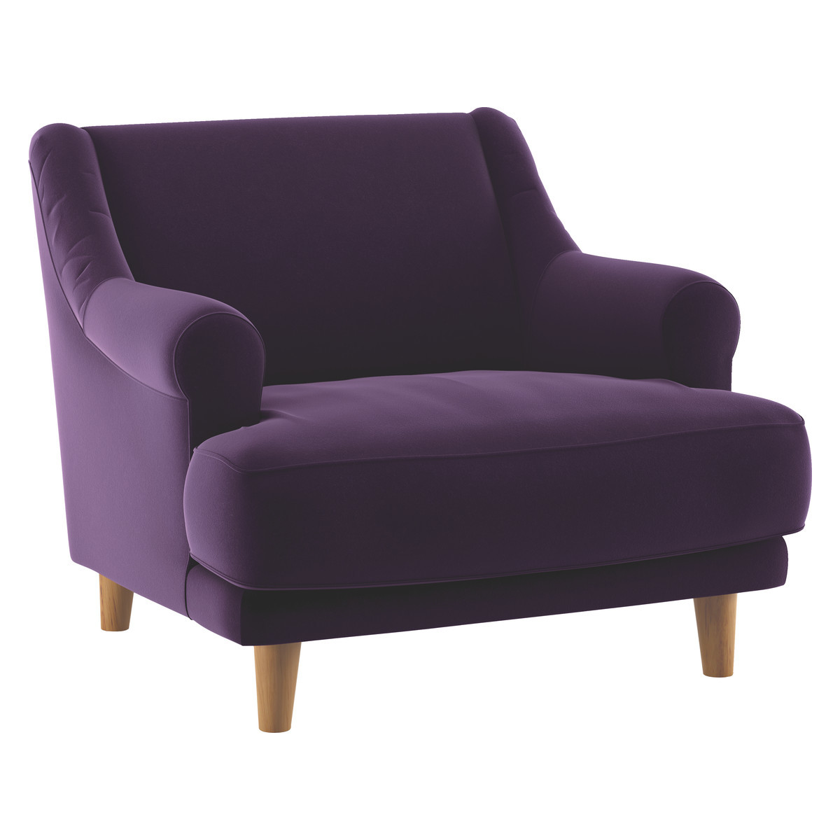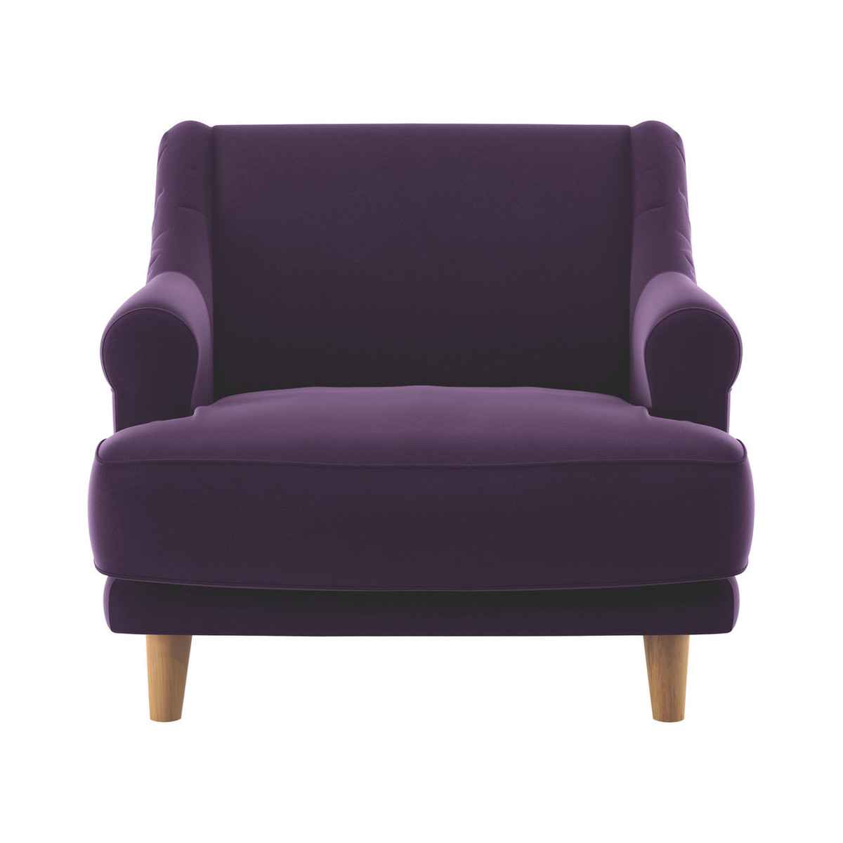 Townsend Purple Velvet Armchair With Wooden Legs, Purple