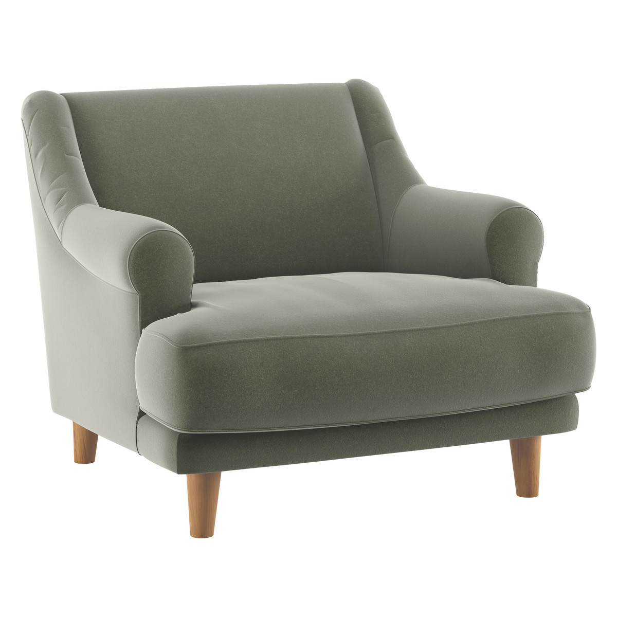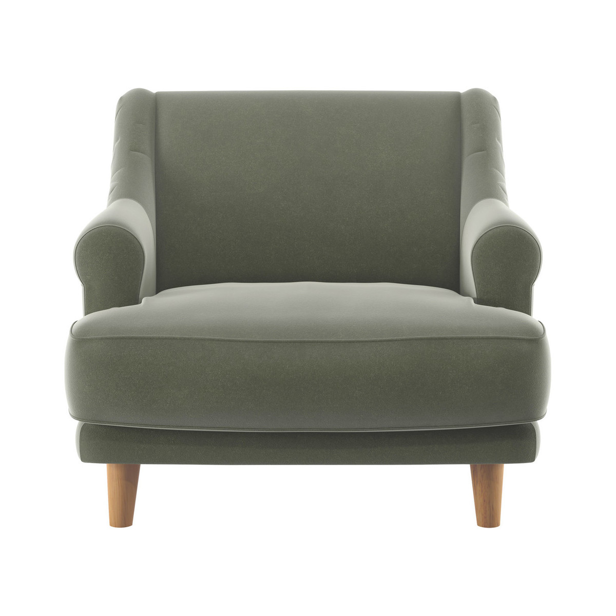 Townsend Sage Green Velvet Armchair With Wooden Legs, Green Green