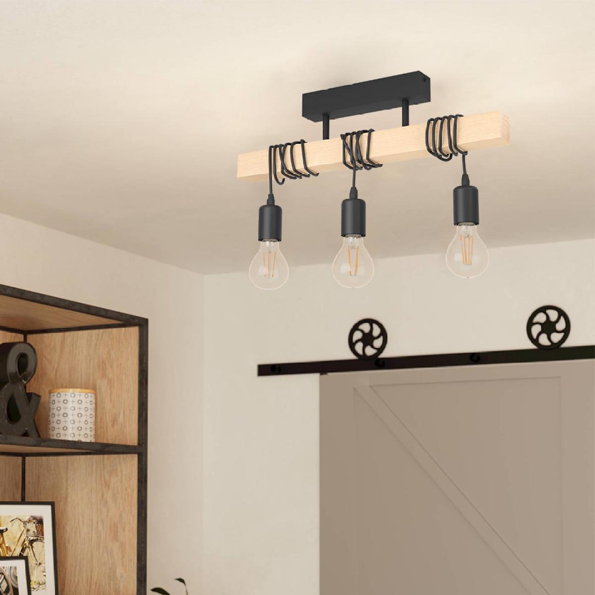 Townshend 3 Light Wooden Ceiling Light The Townshend wooden 3 ceiling light is a contemporary piece from Lighting. This semi flush fitting is composed of a matt black ceiling plate with a fixed rectangular wooden frame from which 3 black lights suspend. These lights can be individually adjusted by wrapping the flex around the wooden bar giving a rustic and unique style. This light looks best used with vintage bulbs. Pair this light with our 4w LED Vintage bulbs for a rustic and industrial glow to complement the exposed bulb styling. Townshend 3 Light Wooden Ceiling Light The Townshend wooden 3 ceiling light is a contemporary piece from Lighting. This semi flush fitting is composed of a matt black ceiling plate with a fixed rectangular wooden frame from which 3 black lights suspend. These lights can be individually adjusted by wrapping the flex around the wooden bar giving a rustic and unique style. This light looks best used with vintage bulbs. Pair this light with our 4w LED Vintage bulbs for a rustic and industrial glow to complement the exposed bulb styling.