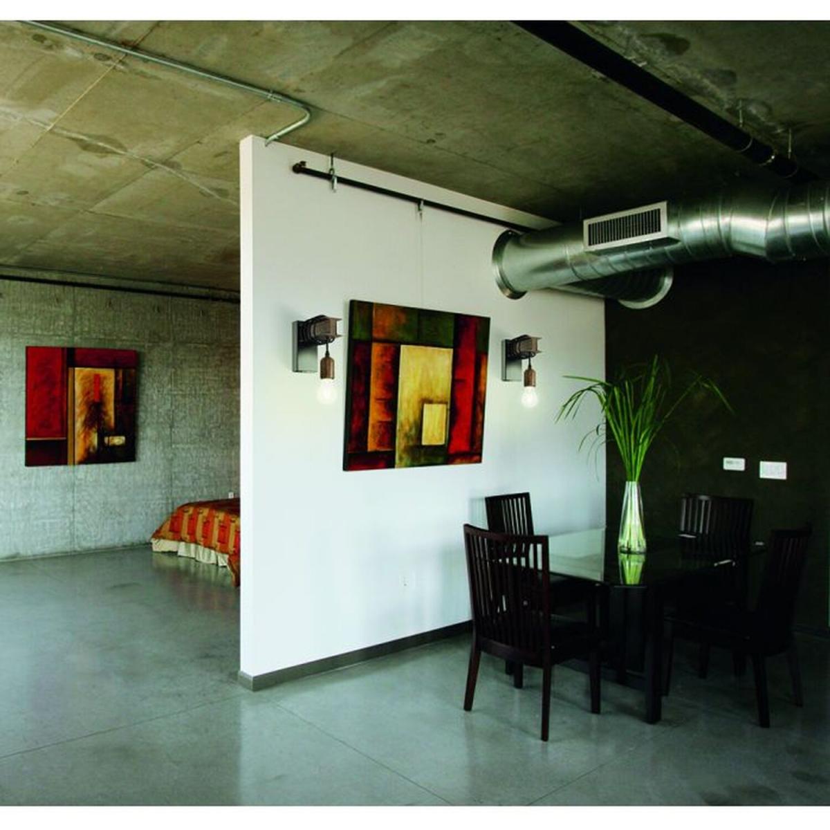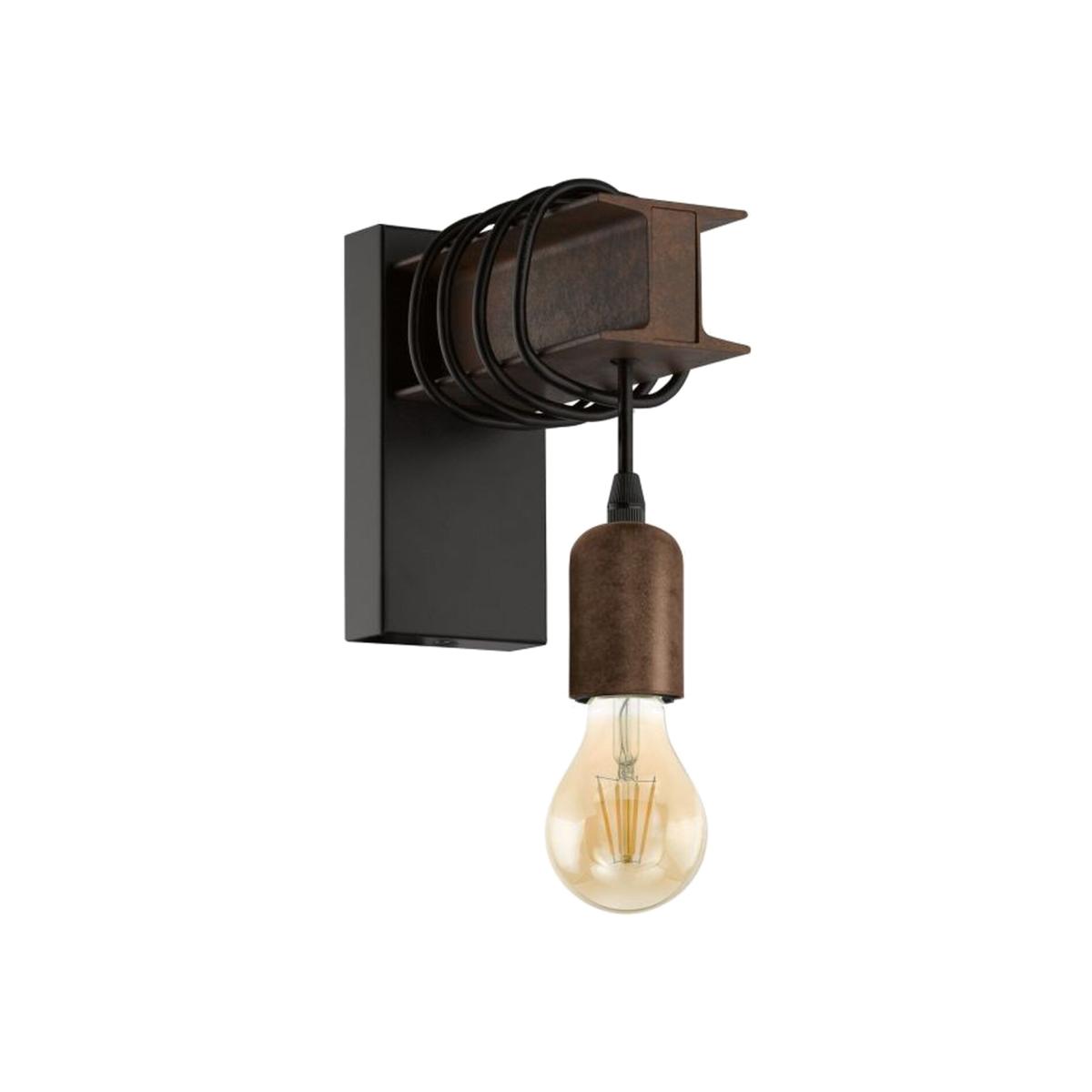 Featuring an industrial design, the Townshend 4 wall lamp has a black steel base with a single lightbulb draped over a brown steel bar. The product has an exposed lightbulb style and requires 1 x E27 illuminant, perfect for large retro-style illuminant for maximum impact.