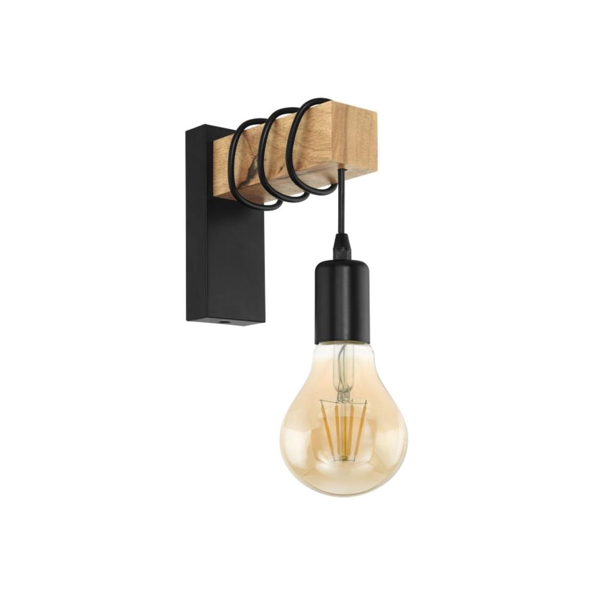 With its combination of black steel and natural wood, the Townshend wall light adds an element of industrial chic whilst illuminating your home's interior. The fitting has a black steel base with a lightbulb draped over a wooden bar. The fitting requires 1 x E27 illuminant and would compliment a large retro-style lightbulb to complement this vintage look.