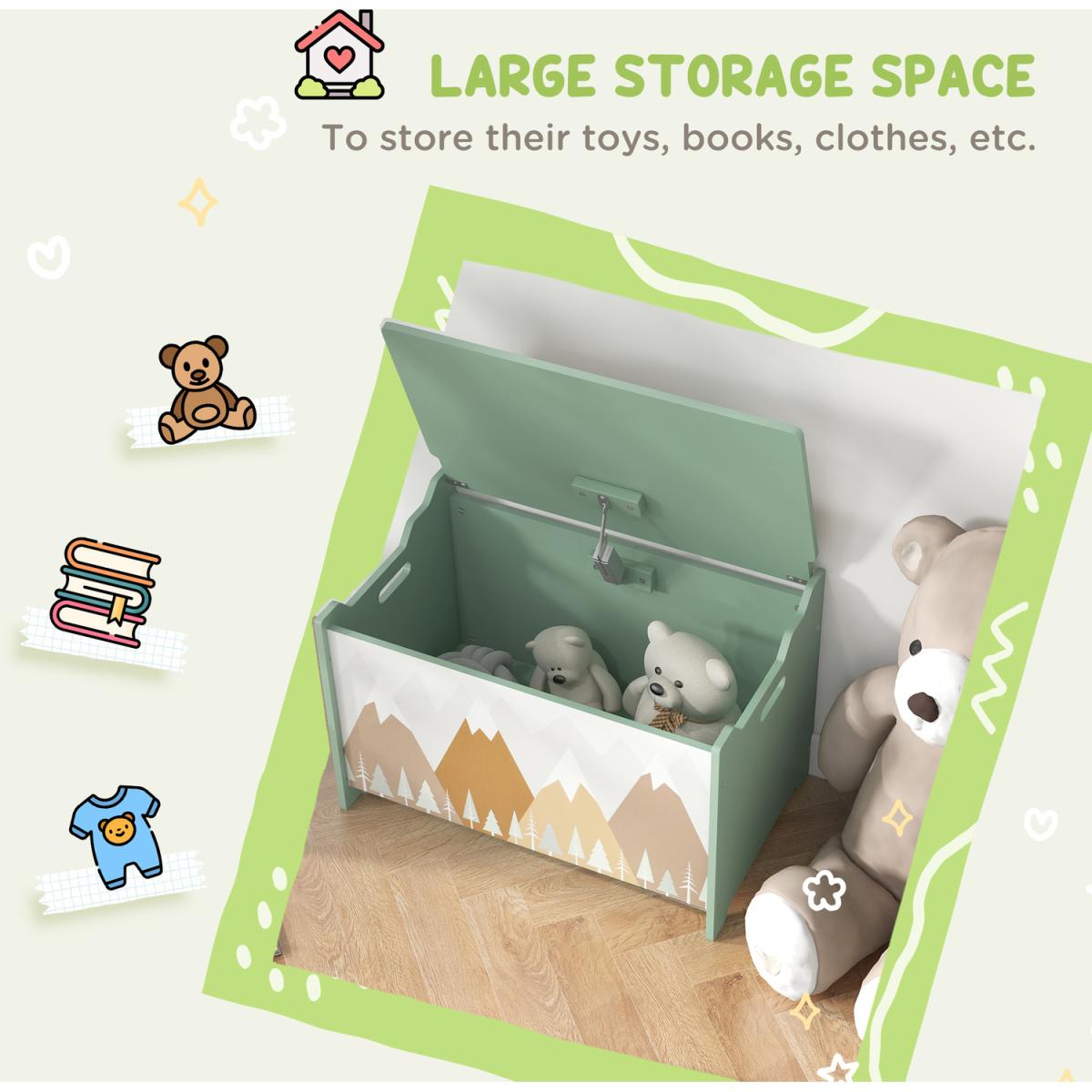Toy Box for Girls Boys Kids Toy Chest with Lid - Green