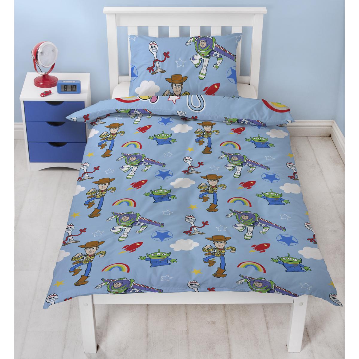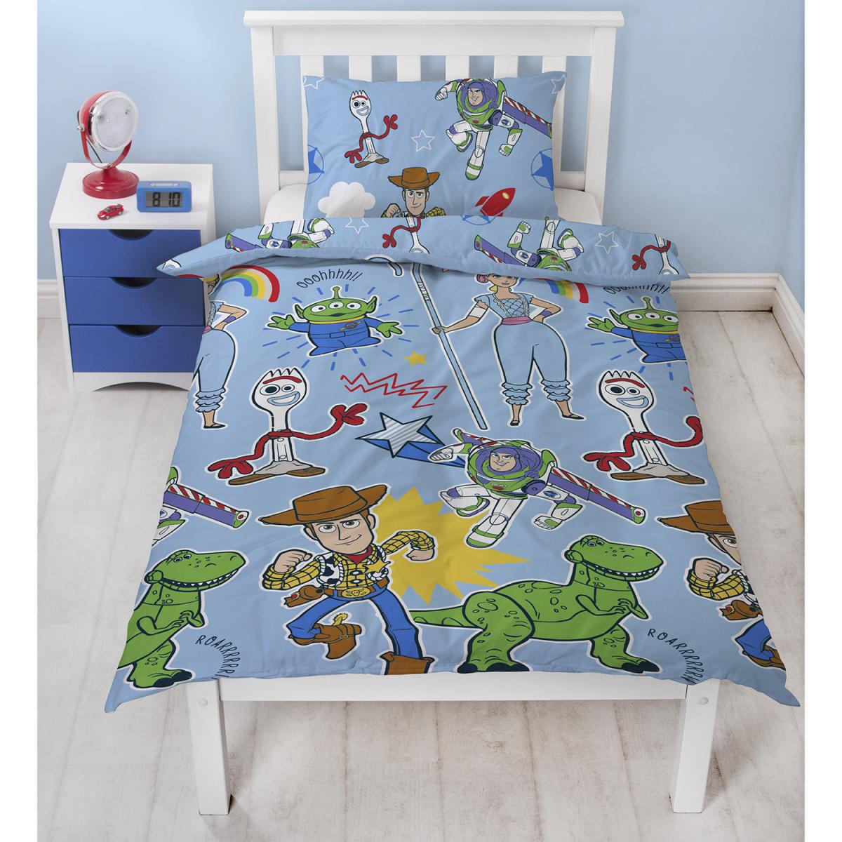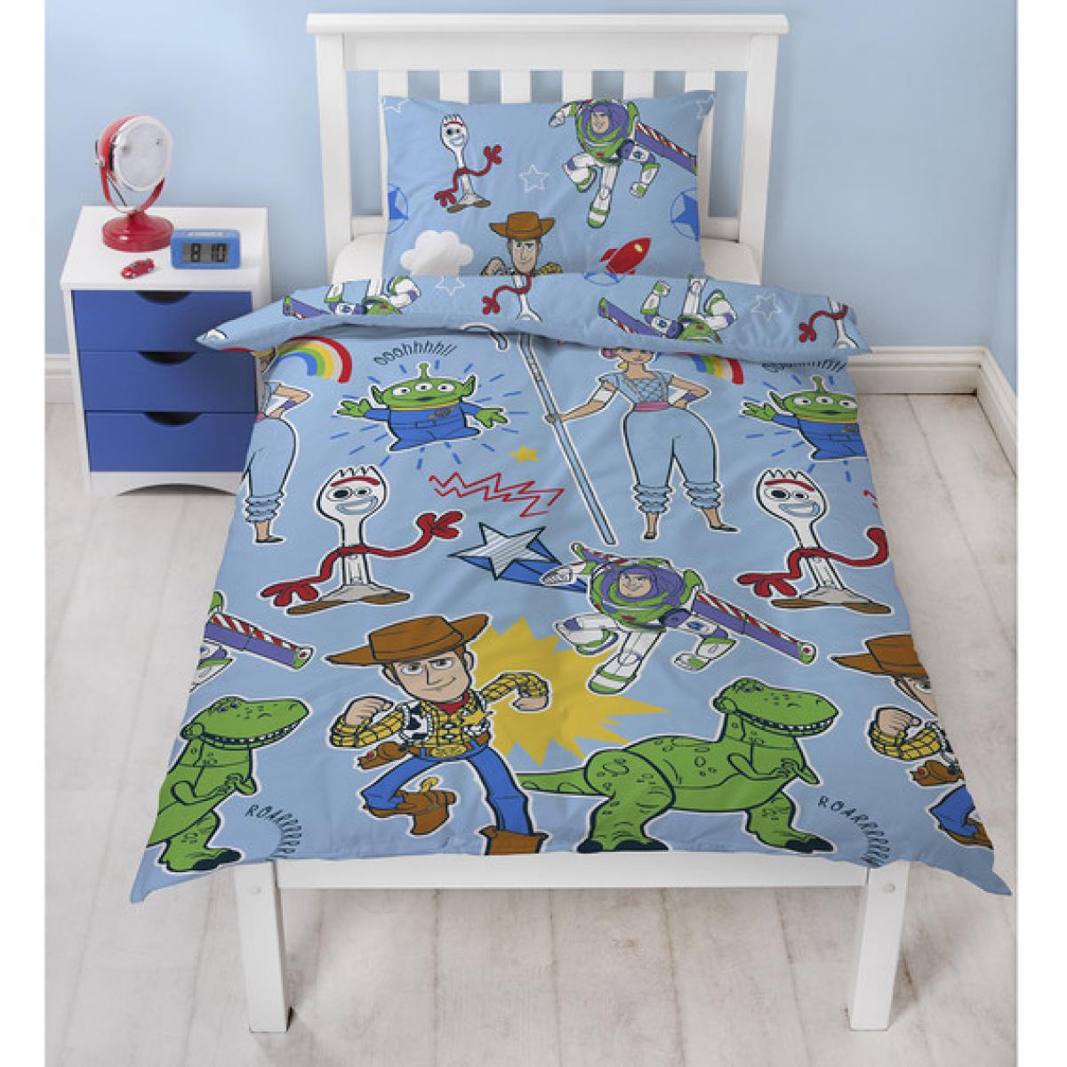 Perfect for basically any child's bedroom, the Toy Story Roar Duvet and Pillowcase Set is covered in characters from the iconic Toy Story film series that children and adults alike adore. Including Woody rushing in to save the day, Bo Peep standing ready, Buzz Lightyear soaring in for a punch, and more, this super bright and colourful duvet set will soon become your kid's favourite. Made from 100% polyester for an easy-care quality, this duvet set is completely machine washable. This duvet set comes with one matching pillowcase.