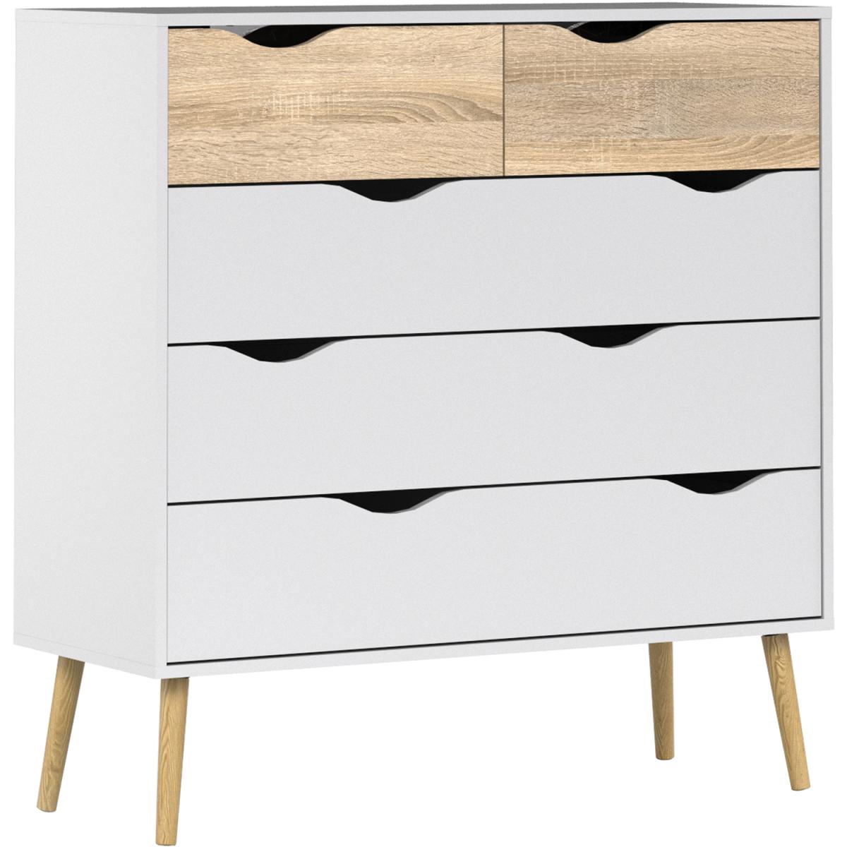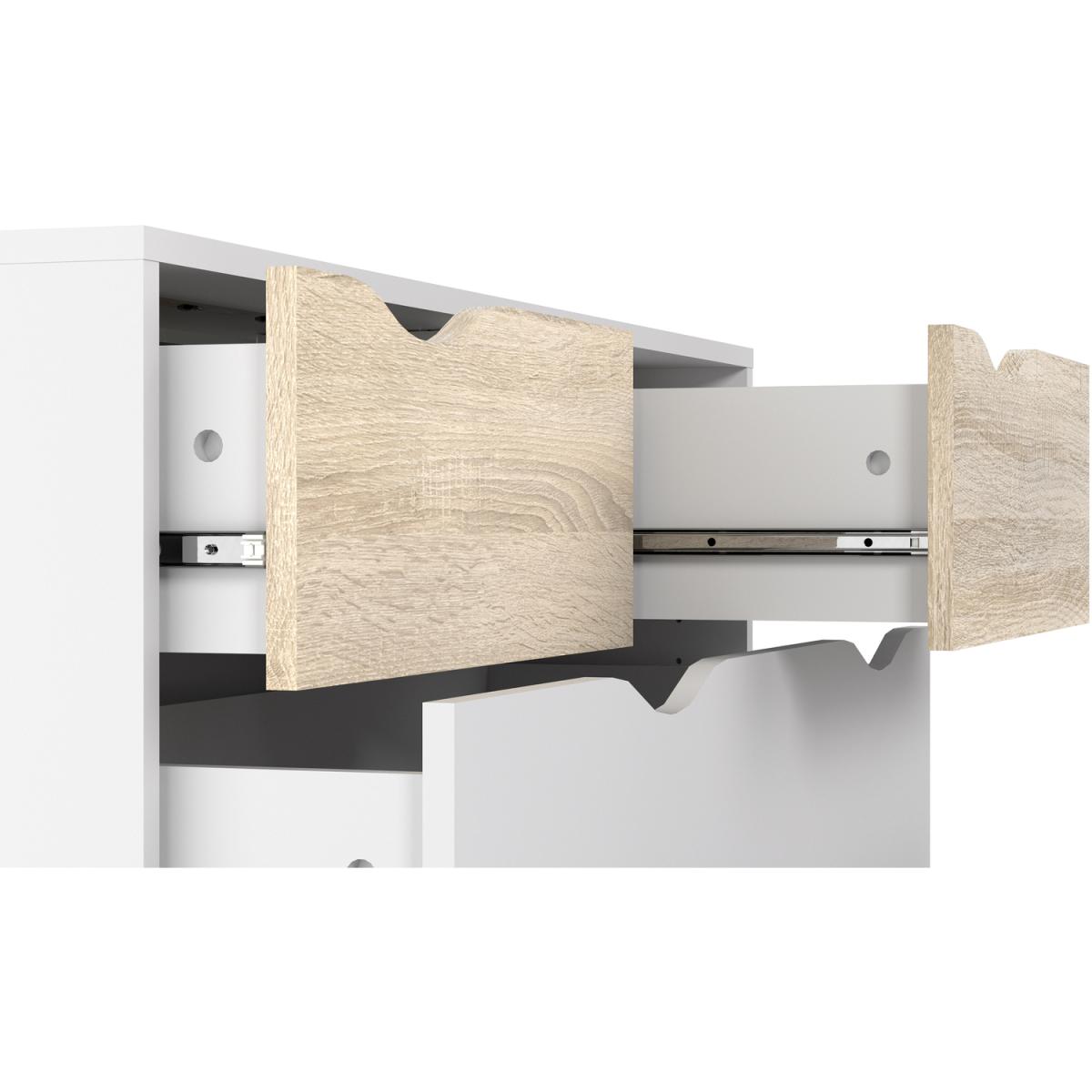I’m a fan of this white-and-oak chest for its clean lines and natural warmth - it slots straight into Scandi, minimalist or contemporary schemes. The mix of matt white fronts and oak drawer faces keeps the look fresh without feeling cold. Styling-wise, treat the top as a mini display: a simple table lamp, a small framed print and a pot plant will add interest without clutter. In a hallway it works as a tidy catch-all for keys and gloves, while in a bedroom it’s ideal for organising linens or off-season clothing.