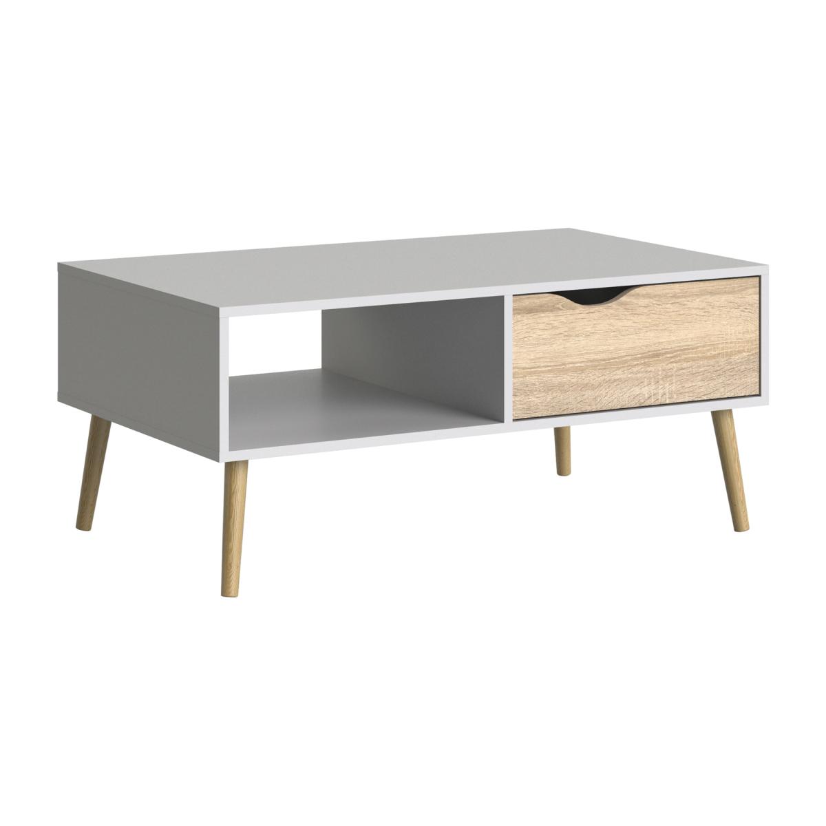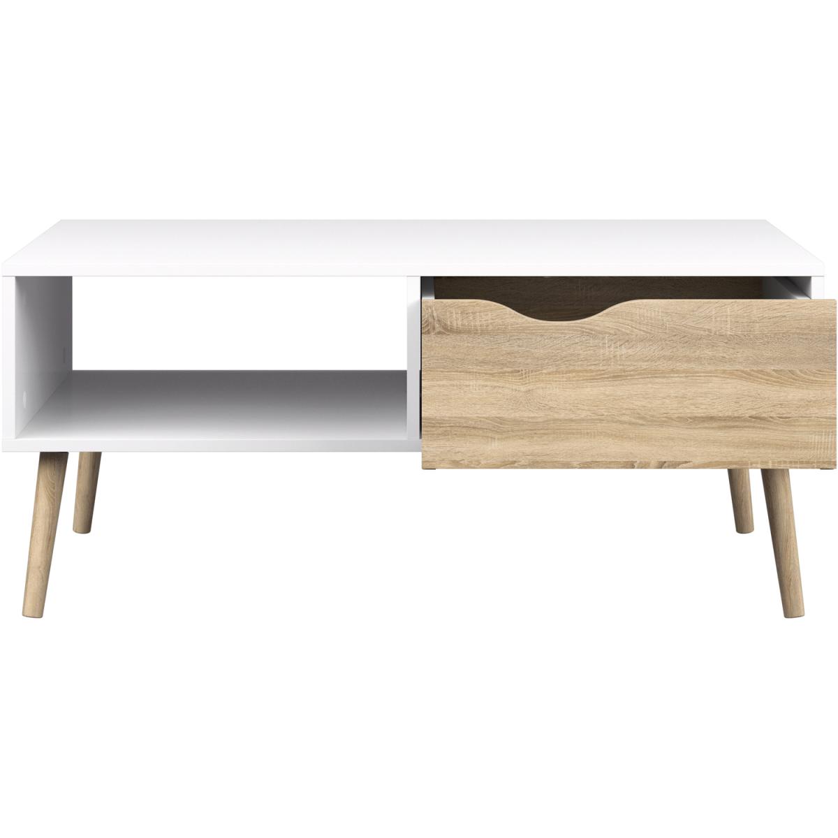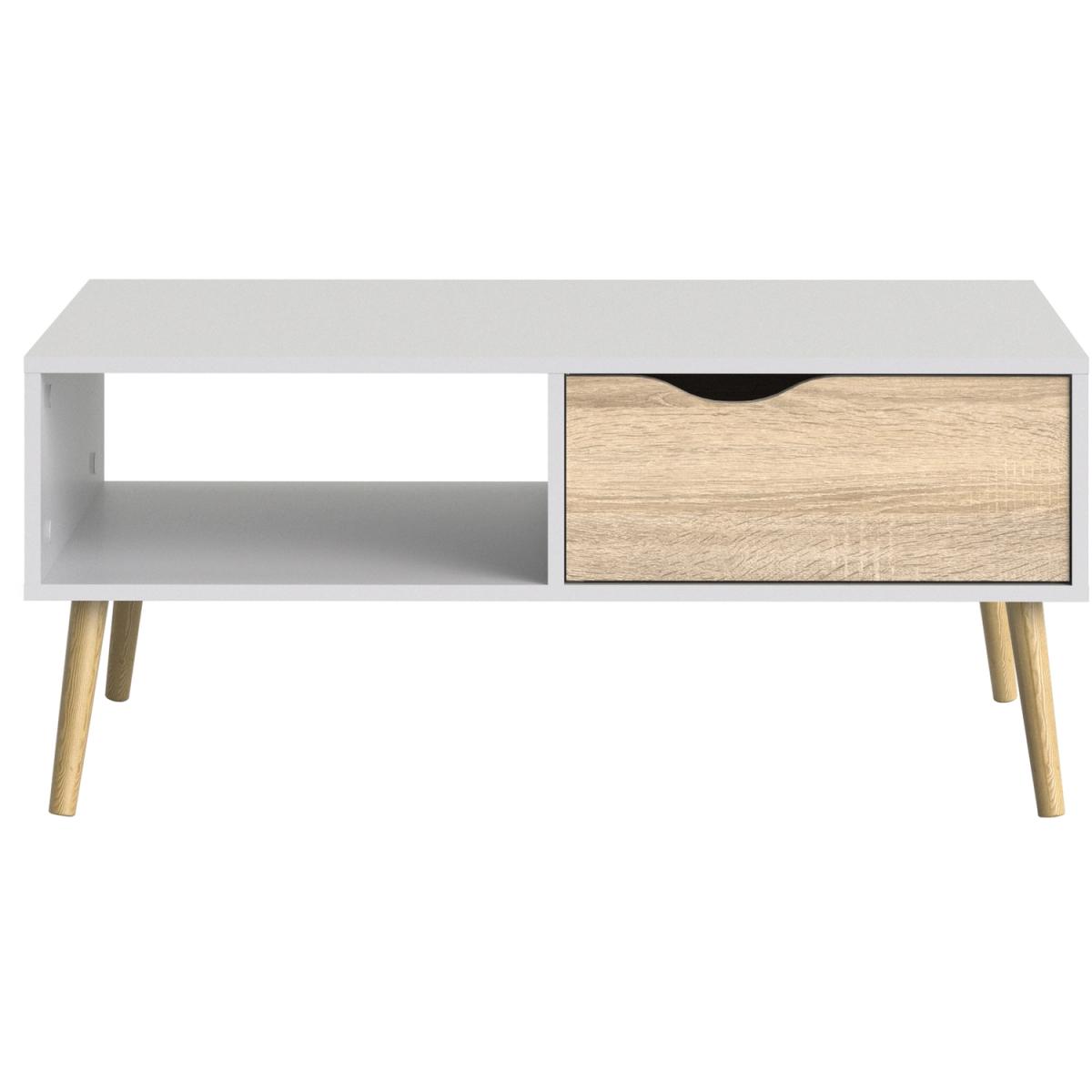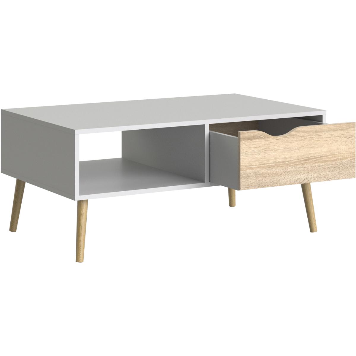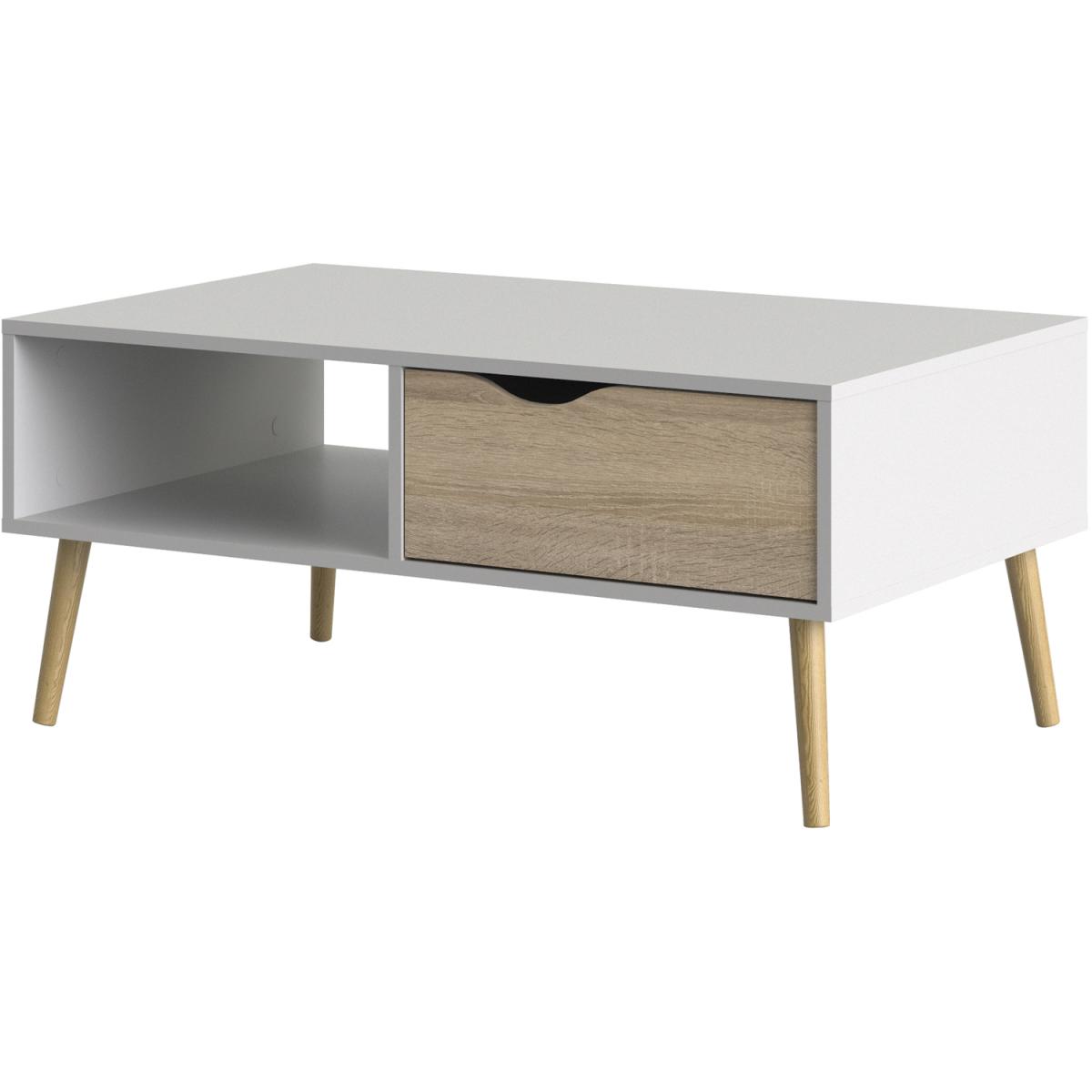 Toyen Coffee Table One Drawer One Shelf - White and Oak