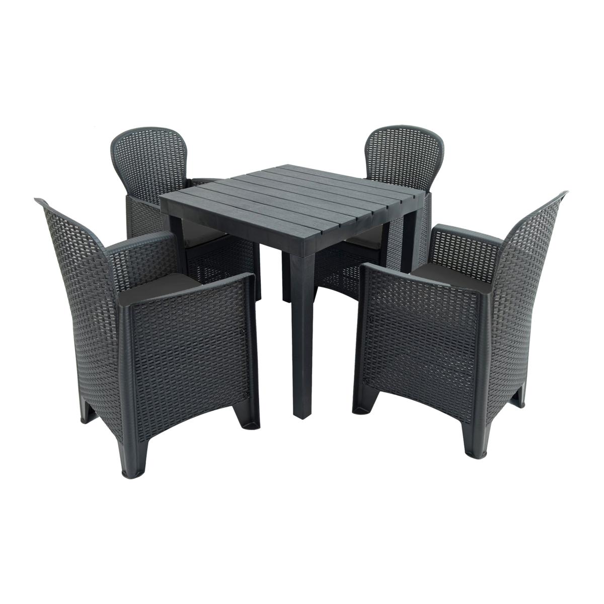 The stylish Sicily chairs with seat pad included really lift this set, the chairs are extremely comfortable and can be used as dining chairs around the Roma square table. The set is manufactured from durable polypropylene and is both easy to assemble and maintain.