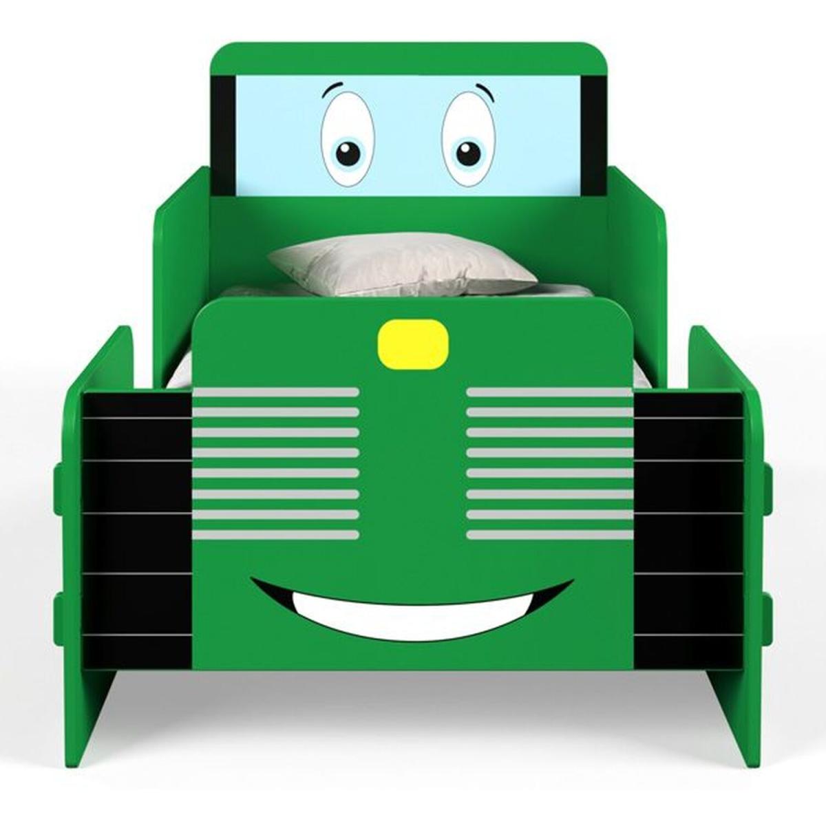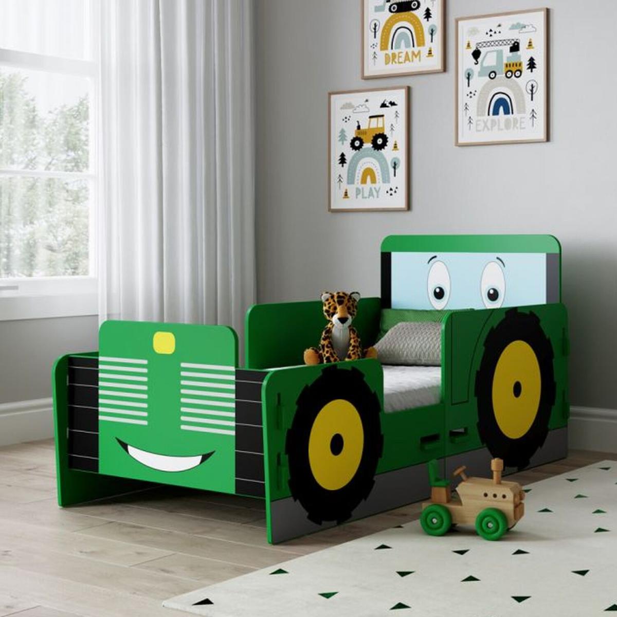 This gorgeous Tractor junior bed is the perfect addition to any Tractor fans bedroom. It features high quality screen printed graphics with a paint finish and is easy to assemble, the whole Tractor bed slots together to make a sturdy yet fun structure. Slot it together, screw the slats in and job done. Ideal for children transitioning from a cot to a grown up bed. Comes flat packed for easy home assembly. Bed has high sides, great for protecting your child while they sleep.