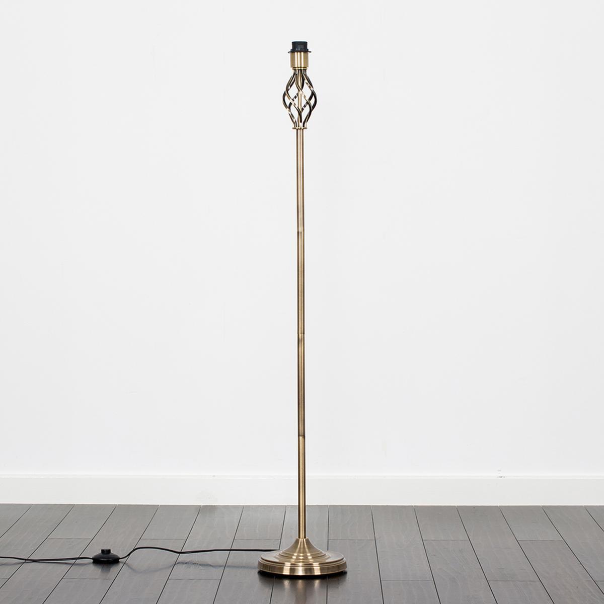 Traditional style barley twist floor lamp in an antique brass metal finish. Pair with a shade of your choice to complete your desired look. This floor lamp will make a great addition to any room in your home. Its twist design matches most interiors whether modern or traditional. Floor lamps are a great way to bring additional lighting to a room or you can use them reduce your main light output, and create a more relaxing moodatmosphere.