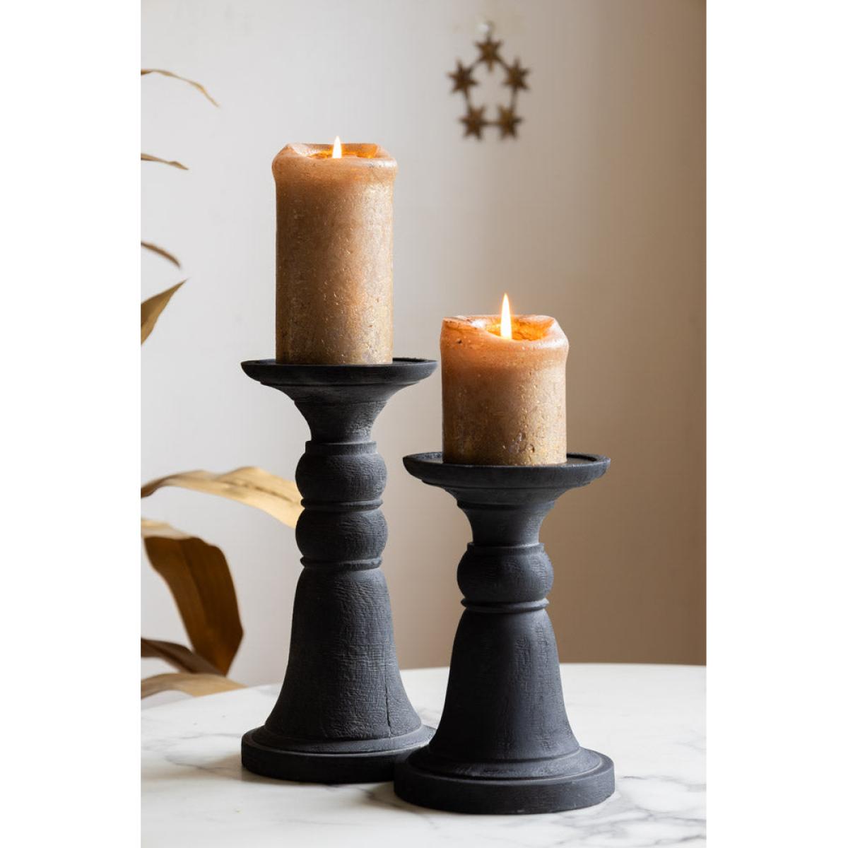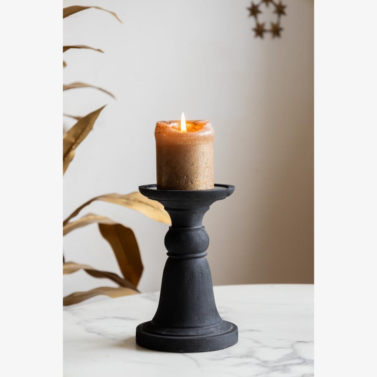 The Traditional Black Pillar Candle is all about drama in the best way. Thick, bold, and a little bit gothic, this candlestick holder looks like it could have been lifted straight out of a shadowy old mansion – or styled up in a sleek urban loft. Designed to hold your favourite candlestick, it’s a perfect table decoration for setting a moody glow amongst your quirky home décor. Think spooky chic meets timeless cool. - Traditional Black Candle Holder - Short - Measures:W11.5cm x D11.5cm x H19cm - Materials: Wood - Handle with care and wipe clean only