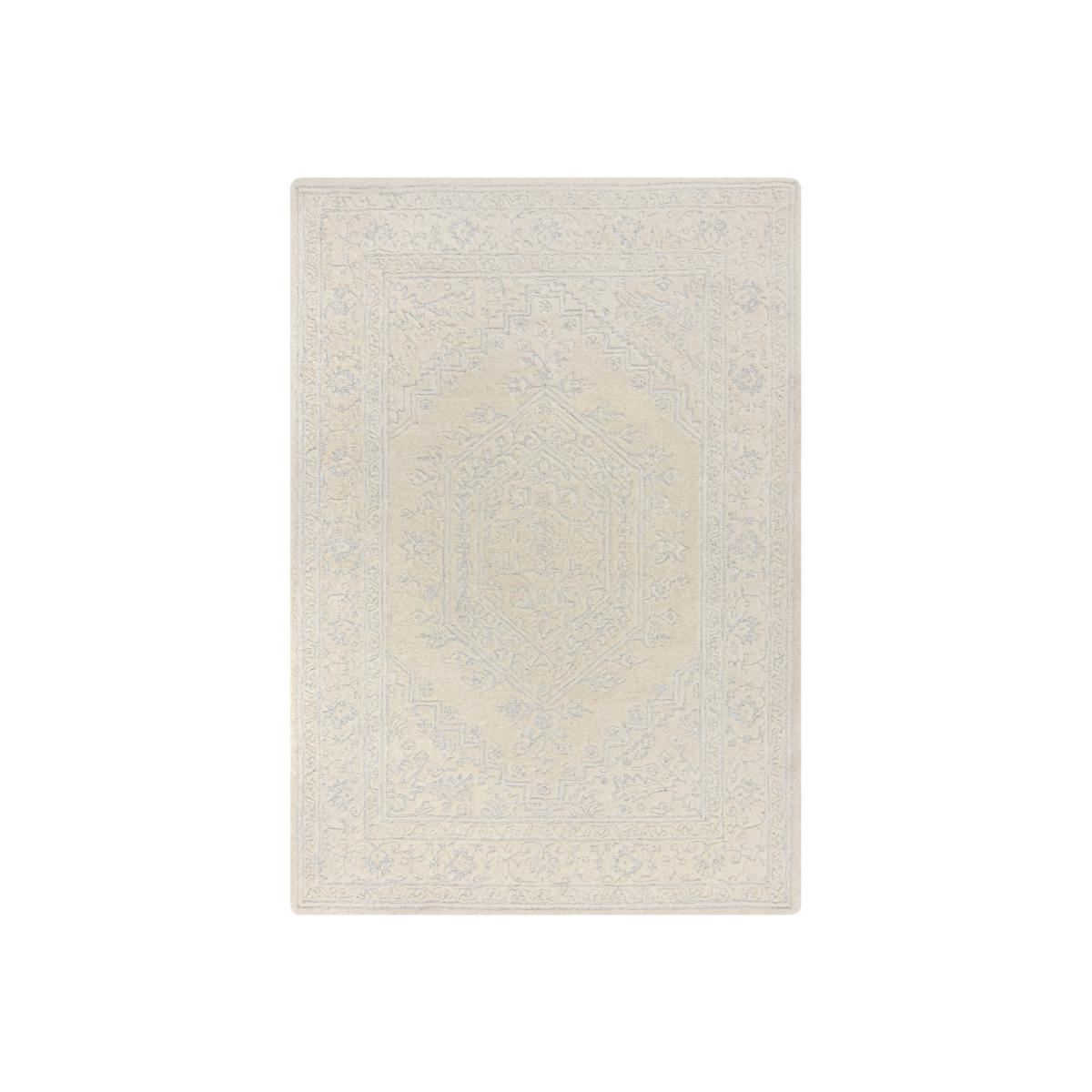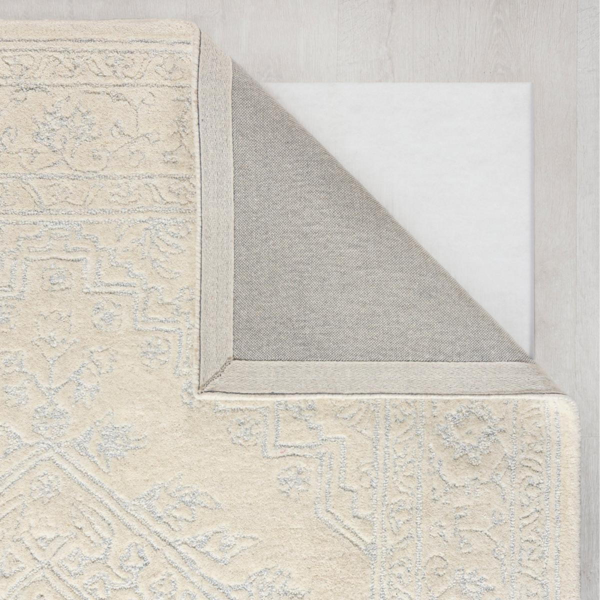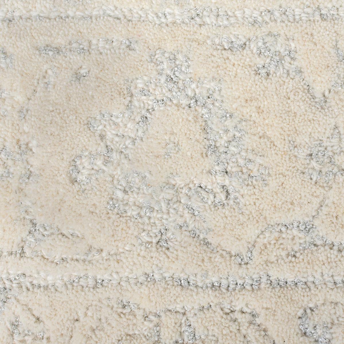 The Traditional Lux Wool Rug pairs shimmering lurex with a timeless traditional design. Hand-crafted by skilled rug artisans in India, the wool-rich design is densely tufted for a soft underfoot feel. We love using the Traditional Lux Wool Rug to add a touch of glam to living rooms and bedrooms. This is a hand-made rug. When opening, re-roll your rug pile out and leave in a warm room for 24 hours before putting in place, this will help to reduce wrinkles and curling from packing. Do not pull any loose threads, please cut them carefully with scissors to remove. Avoid prolonged exposure to direct sunlight as this may cause fading of the colour. Turn your rug regularly to ensure even wear and to reduce pressure marks from furniture. Wool fibres may shed when new and during use, this is a characteristic of this product and is not a defect and should reduce with normal use and weekly vacuuming. Before using any cleaning products on your rug, test on an inconspicuous area first to ensure it does not affect the colour. Clean spills immediately by blotting with a clean dry white cloth - do not rub as this may stain the fibres. Vacuum your rug regularly to remove everyday dirt, we recommend the use of a suction type vacuum cleaner as a rotating vacuum brush can cause damage to the pile surface. Keep away from fire, do not leave children unattended on this rug.