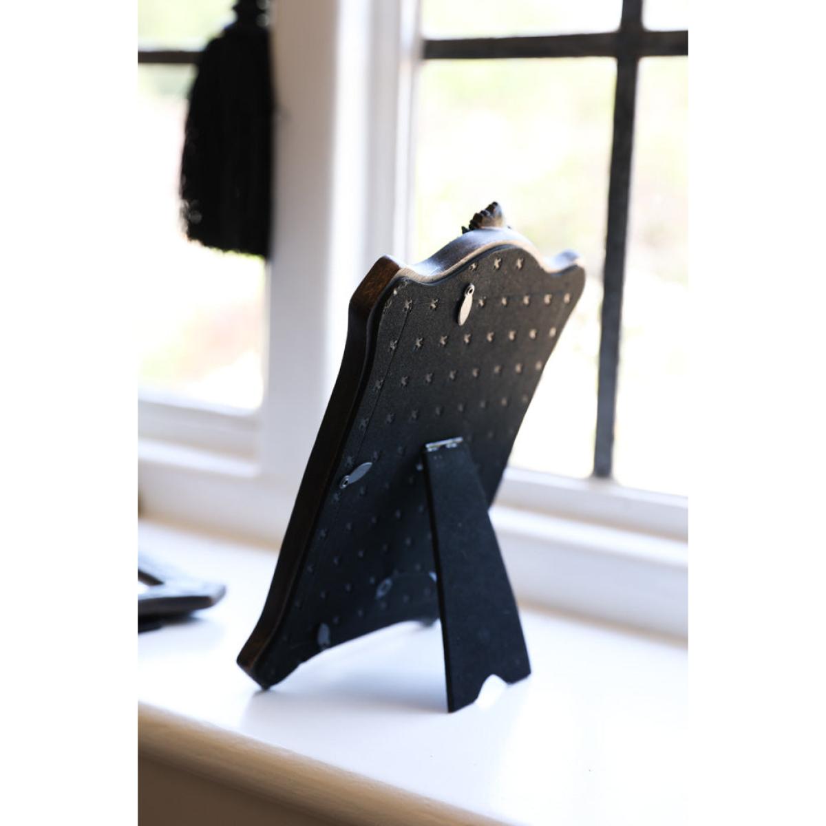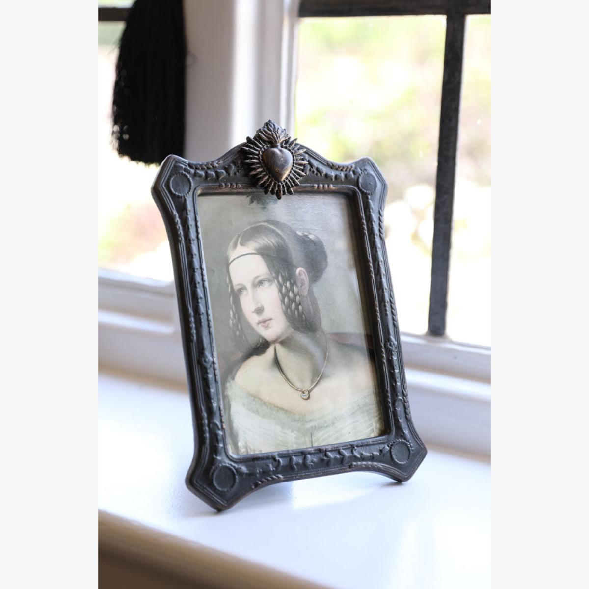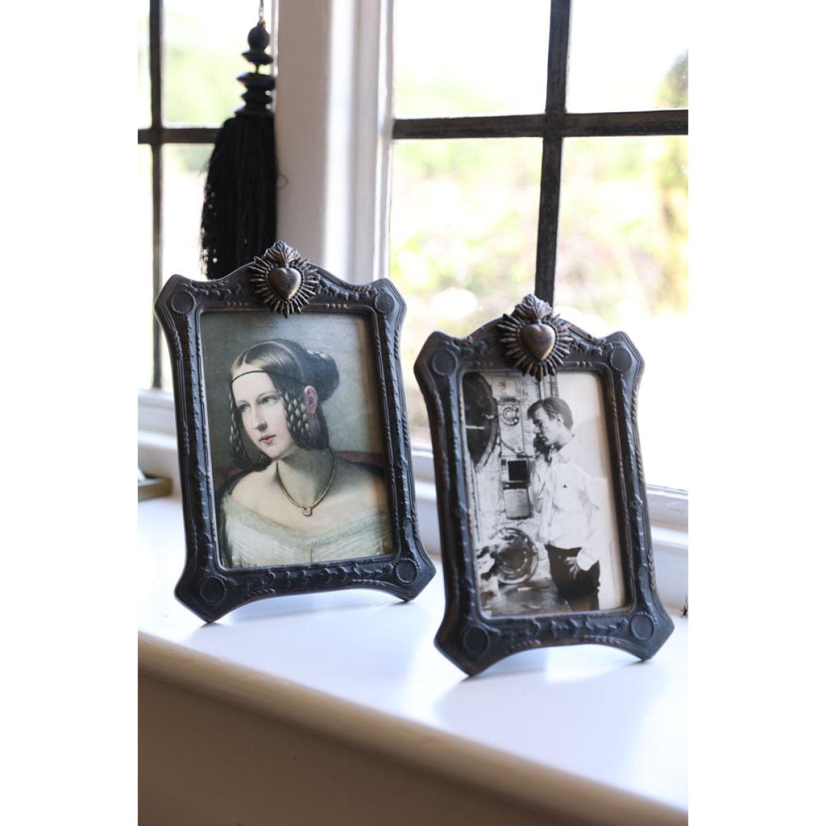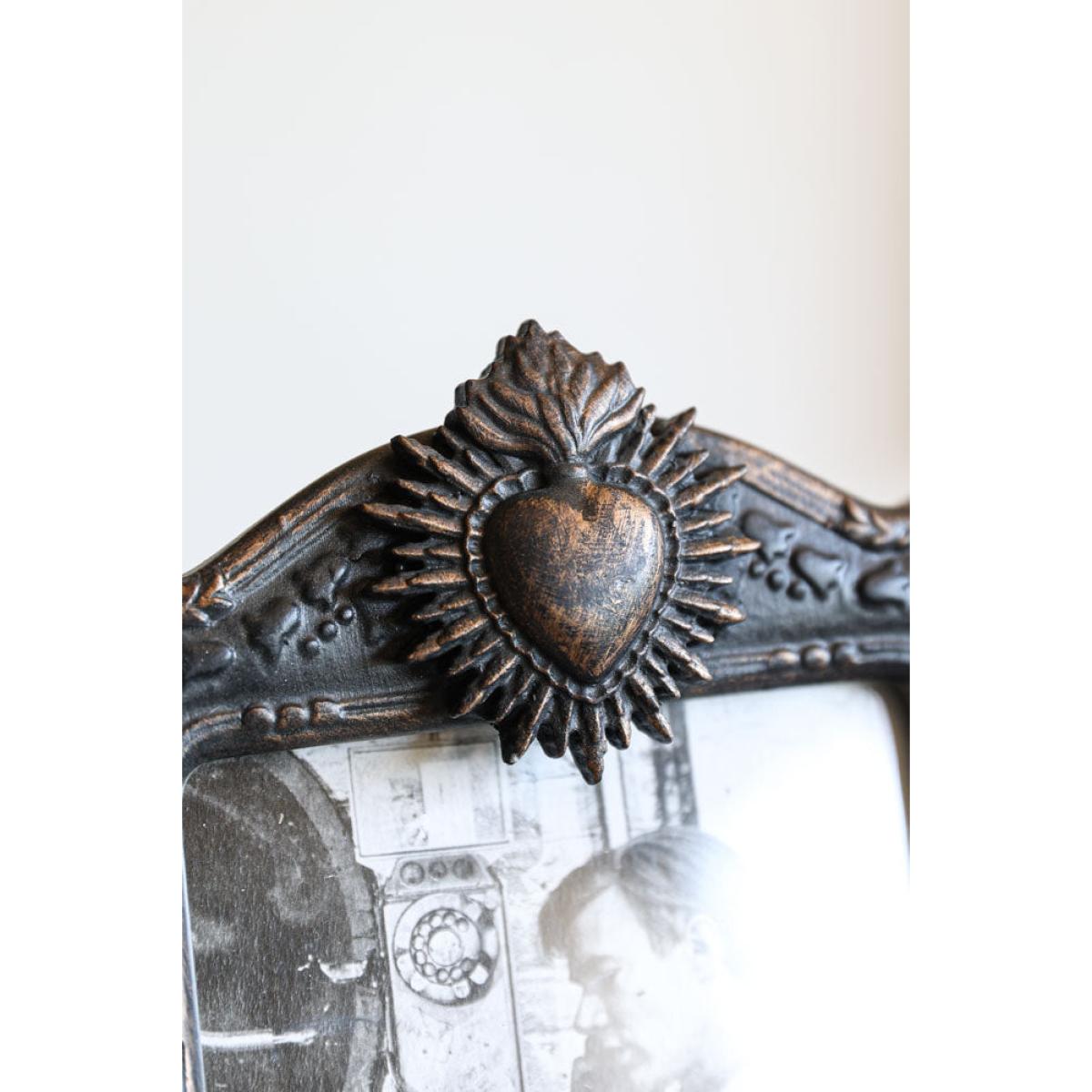 Elevate memories with your favourite people with the Traditional Milagro Photo Frame in Medium. Drawing inspiration from Mexican Milagro charms, this decorative picture frame blends romantic symbolism with vintage-style glamour. Featuring a dark, antique finish and an ornate sacred heart detailed at the top, the design has a nostalgic feel that only adds to the photo's sentimentality. Whether you're displaying a treasured family picture, a snapshot of a romantic moment, or a postcard of your favourite work of art, this frame adds maximalist grandeur to your favourite things. Ideal for desks, living room shelves or bedside tables, the design encourages your home decor and accessories to tell a story. - Traditional ornate Milagro photo frame in Medium - Measures: W18cm x H24.5cm - Made from resin and glass - Also available in Small (W15cm x H22.5cm)