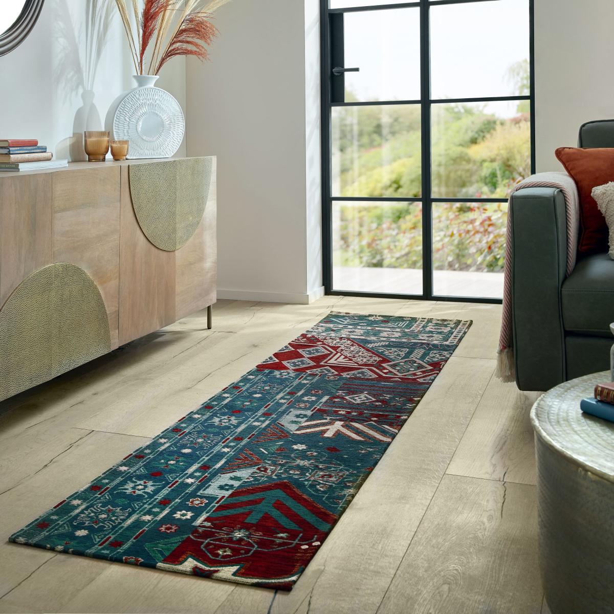 * Gorgeous Patchwork Design* Luxurious Under Foot* Boasts Soft, Chenille Fibres* Flatweave, Low Pile Pairing rich jewel toned hues with a patchwork design, the Traditional Patchwork Runner will add a modern vintage charm to your room. Crafted using soft chenille fibres, this runner feels luxurious under foot. The flatweave low pile runner lends itself beautifully to hallways. Runner pictured is 60cm x 230cm. Care Instructions: Unroll your rug and leave for 24 hours during first use. Maintain your rug by vacuuming regularly with a nozzle attachment. Cut any loose fibres with scissors, do not pull. For accidental spills blot immediately and spot clean with a damp white cloth and leave to dry. Add anti-slip underneath your rug to prevent slipping. Rotate every few months to prolong the life of your rug.