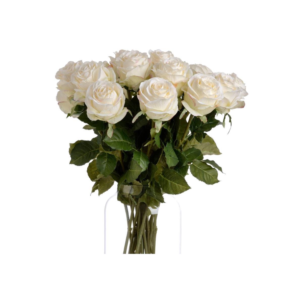 A single stem of Traditional White Rose. A faux traditional long stem garden variety white rose, chosen for its realism. This rose will set off a vase to perfection and complement any choice of dcor.
