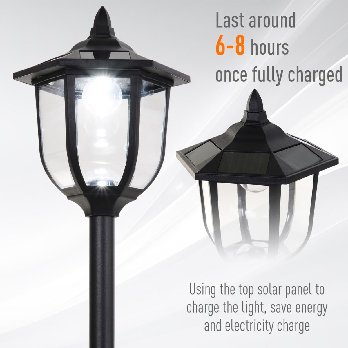 Look to this solar lamp post from HOMCOM to illuminate your home with a traditional twist. Using thick and rigid plastic for the main body, it is crafted into a tall 177cm design to allow it to stand tall and proud in the outdoors of your home. Using stainless steel, with an IP44 grading which ensures it is safe for outdoor use, the top lamp is moulded into a classically shaped design with six LED lights inside, illuminating the area with natural white flames brightly and calmly. Solar-powered via the top panels, as well as utilising intelligent automatic sensors, it provides up to eight hours of lighting once fully charged, with a switch to turn on and off manually if required.