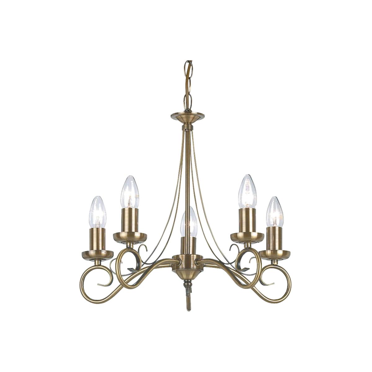 Traditional chandelier boasting an antique brass finish. A gorgeous addition to your home, this ceiling light is part of the Trafford range from Endon. Boasting an antique brass finish throughout, each light bulb is supported by an elegant curved arm with shadow wire detailing. The fitting's adjustable drop makes it extremely adaptable for use in rooms with both high or low ceilings. It is perfect for use in lounges, hallways, dining rooms and bedrooms.