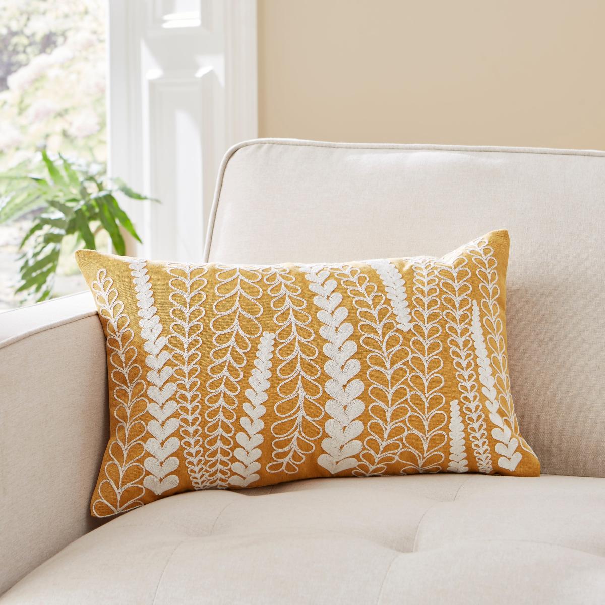 * Embroidery detail* Zip to secure inserted filling* Filled with recycled polyester* Machine Washable Rediscover elegance with the trailing floral cushion. Featuring delicate embroidery, a zip for secure filling, and recycled polyester filling, it's a beautiful and sustainable addition to your decor.