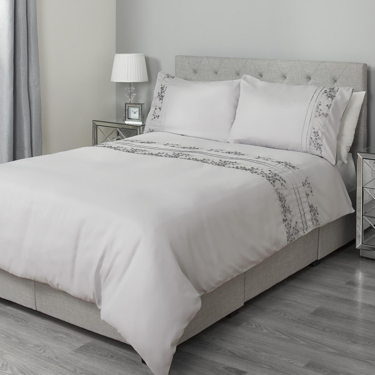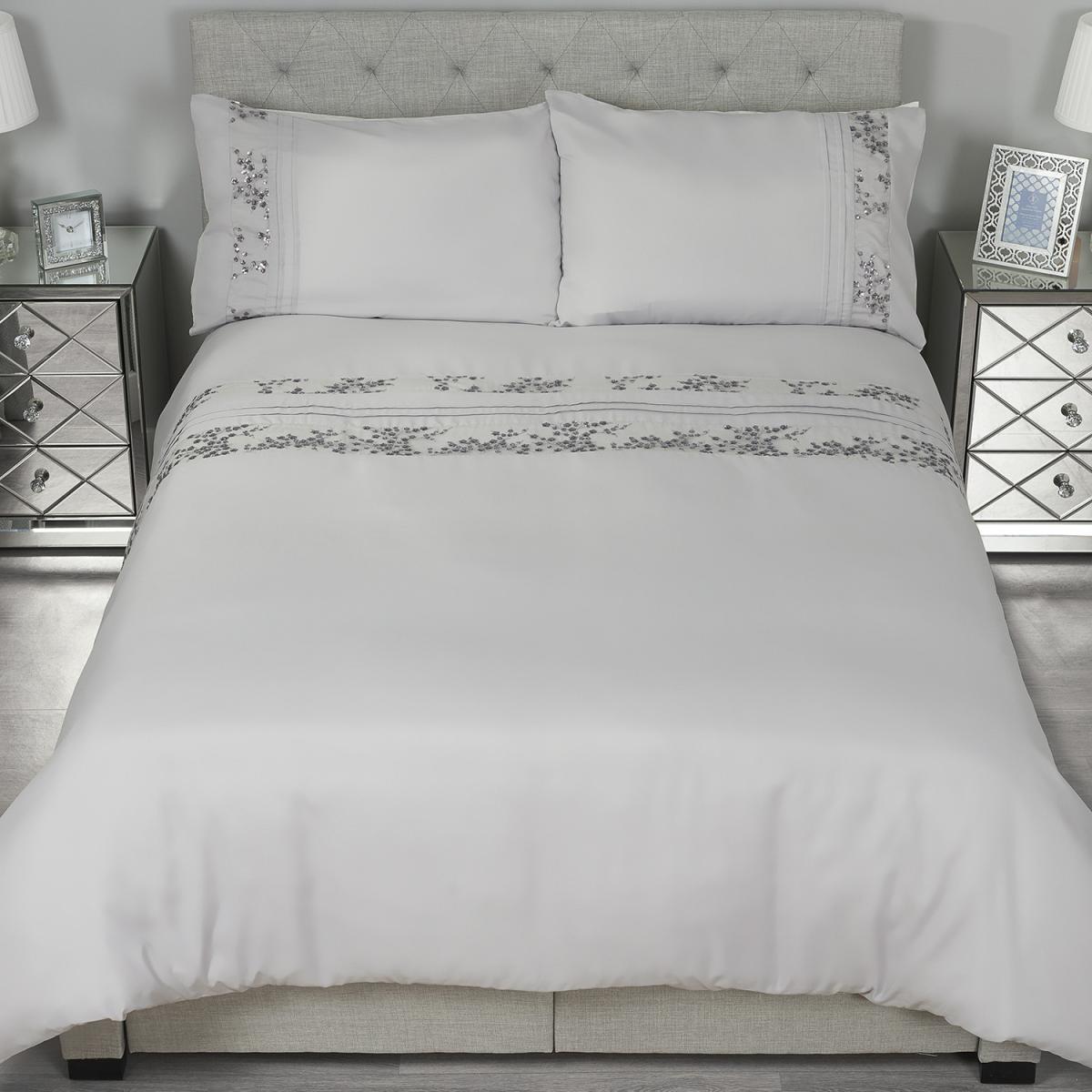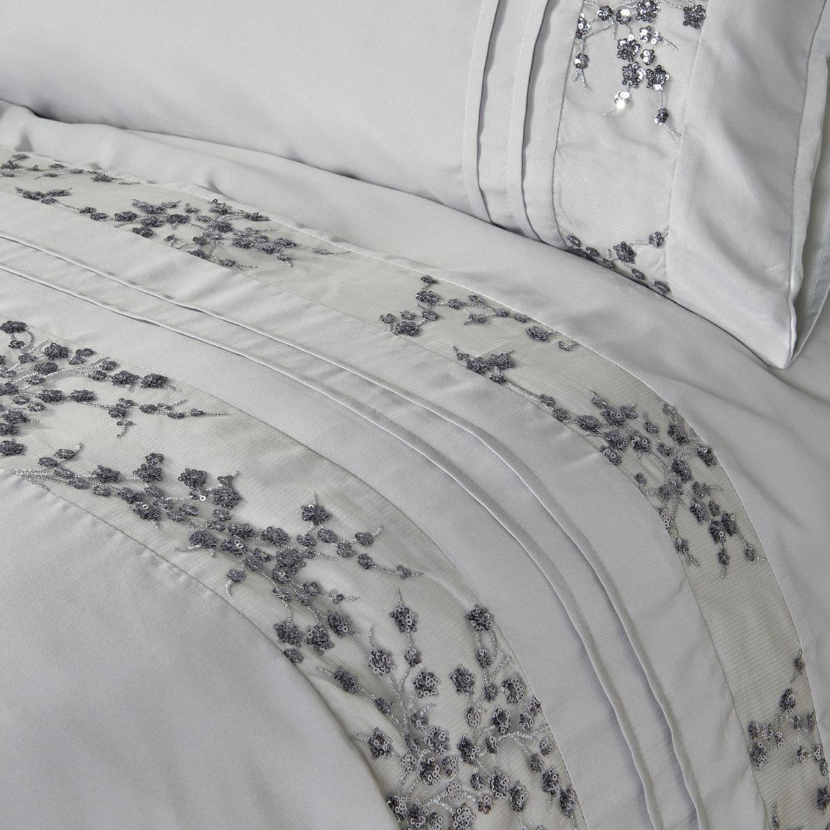 Trailing Sequin Flowers Duvet Cover and Pillowcase Set - King