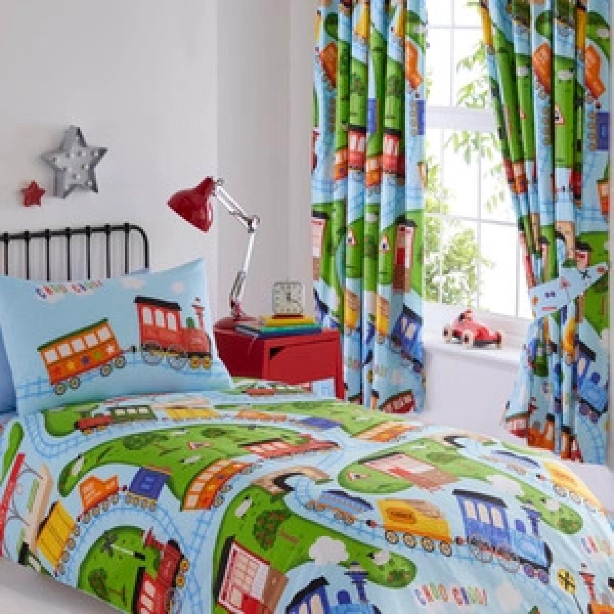 Trains Blackout Pencil Pleat Curtains - Multi / 72cm