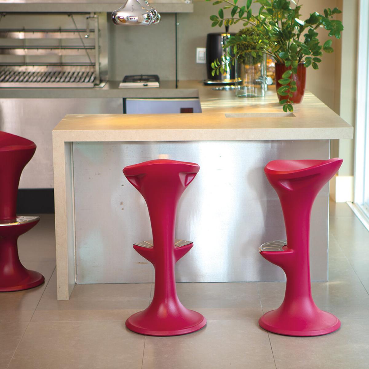The Pepe stool in burgundy is a striking piece that adds a bold pop of colour to any space. I love its modern, sculptural design-it works particularly well in contemporary kitchens or breakfast bars, where it can serve as both a functional seat and an eye-catching accent. Styling tip: pair it with neutral tones on the surrounding surfaces to let the colour really shine, or mix it with other rich, warm hues for a cosy, inviting look. Its sleek shape makes it versatile enough to blend into various interiors, from minimalistic to eclectic spaces, and it’s ideal for creating a statement without overwhelming the room.