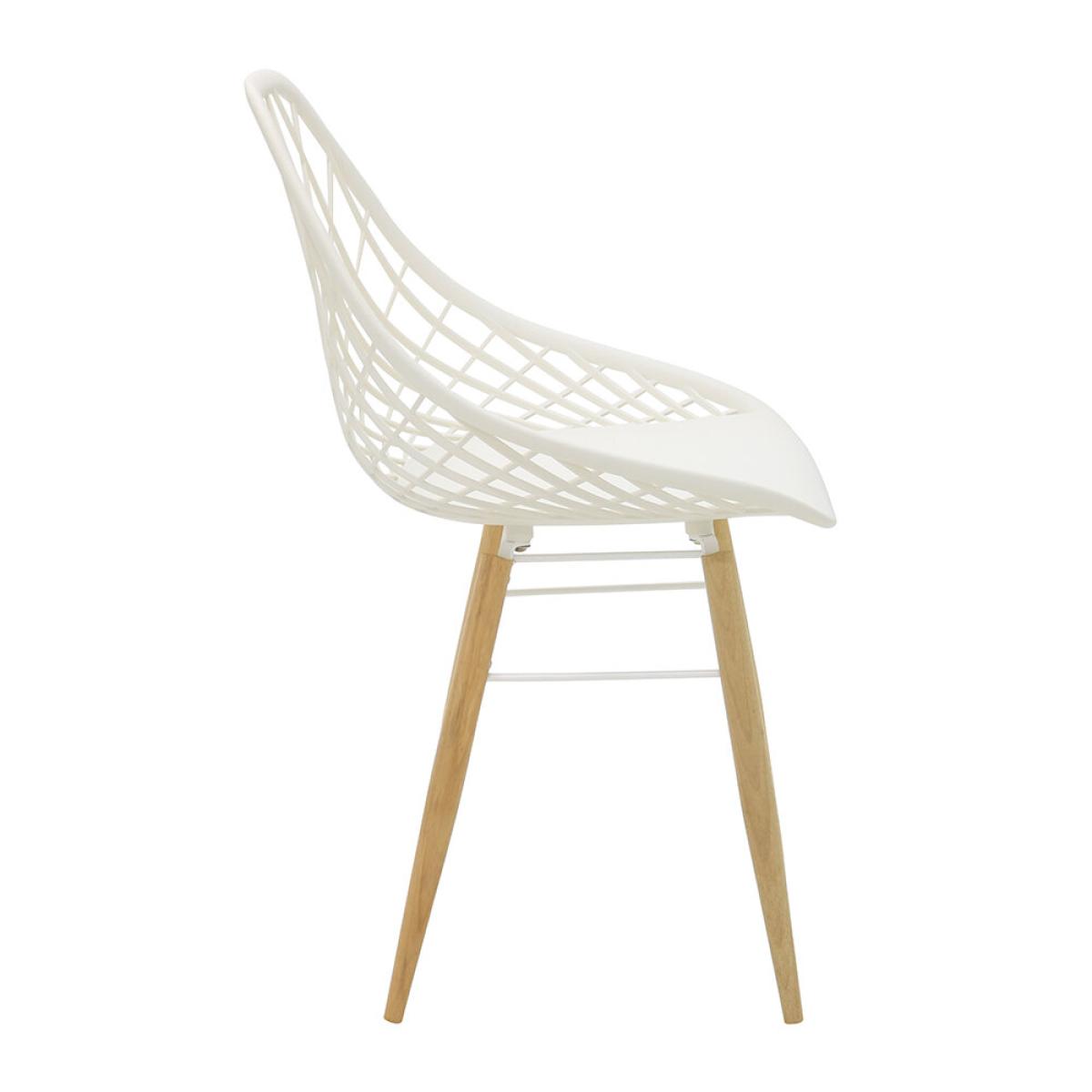 I love this chair for its sleek, minimalist look and versatility. The wire frame design combined with wooden legs gives it a contemporary feel that works well in modern, Scandi-influenced interiors, but it can also add a light, airy touch to industrial or eclectic setups. Its neutral white finish makes it easy to pair with a variety of table styles and colour schemes. For styling tips, consider using it around a wooden or glass dining table for a clean, fresh look, or mix with colourful cushions to add personality and comfort. Practicality-wise, it’s lightweight enough to move easily, making it ideal for both everyday dining and occasional gatherings. It’s a great choice for spaces that value both form and function.