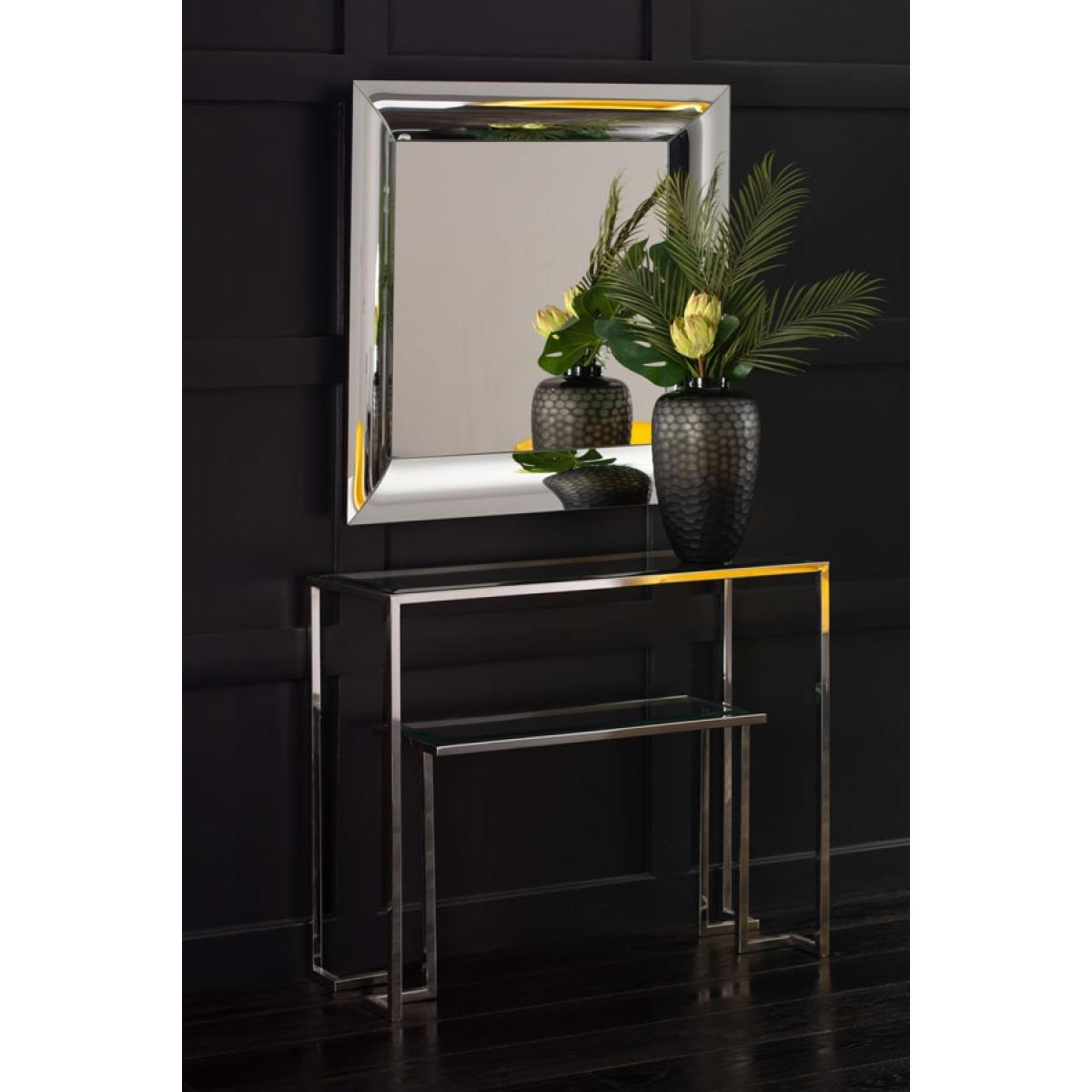 I love the transition wall mirror for its sleek, contemporary look that works especially well in modern or minimalist interiors. Its clean lines and reflective surface make it a versatile piece, perfect above a console or in a hallway to create a sense of space and light. For styling tips, consider pairing it with contrasting textures like matte black or soft velvet furniture to enhance its reflective qualities. It also works beautifully when layered with smaller decorative mirrors or placed amidst greenery - as shown here - to add depth and visual interest. Keep the surrounding decor simple to let this mirror be a statement piece, or use it to reflect architectural details and bring more brightness into your space.