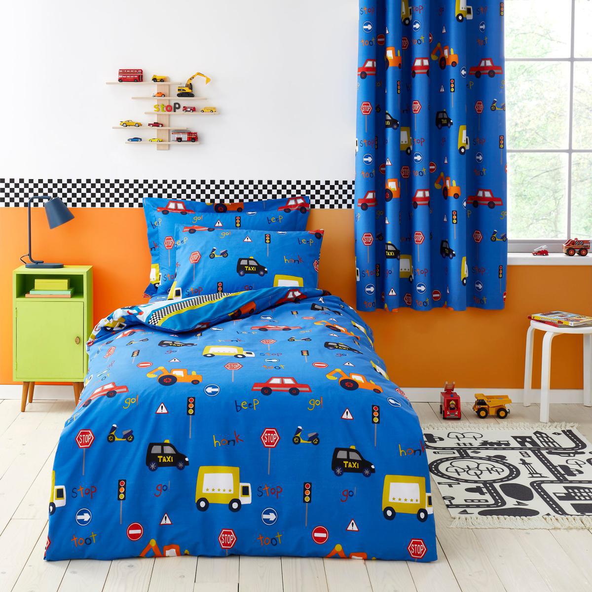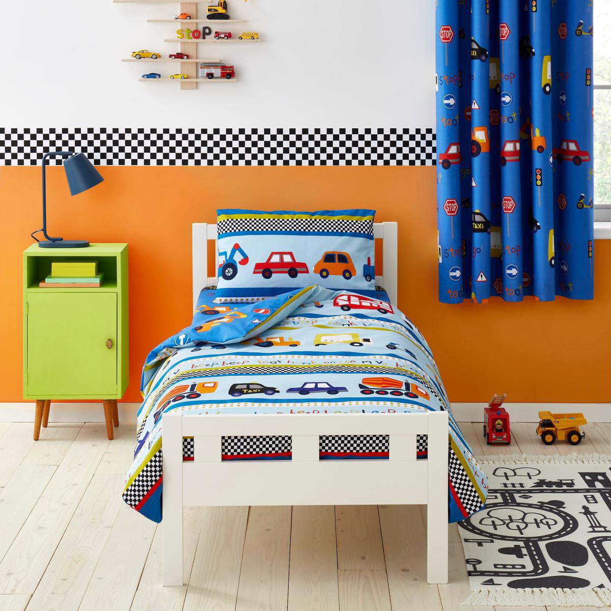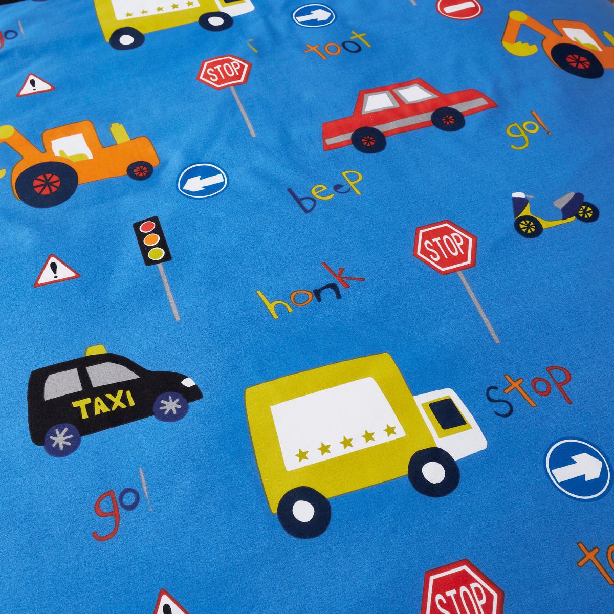 Crafted from soft and durable polycotton and available in a choice of sizes, our novelty duvet cover set features a reversible design with a vehicle pattern and comes with a coordinating pillowcase included.