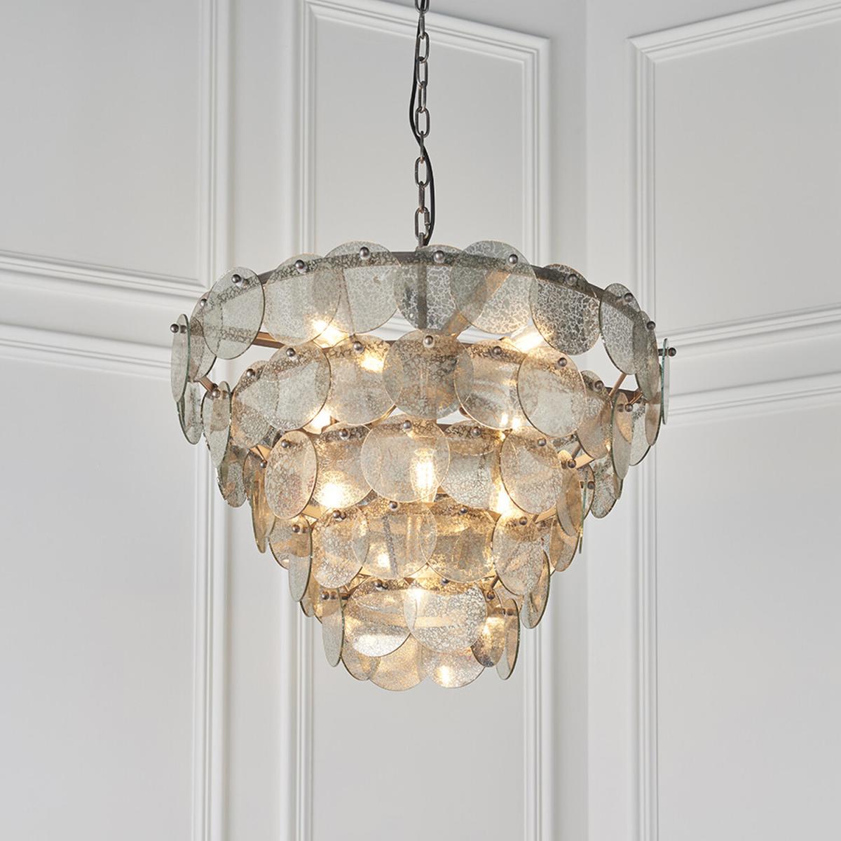 I love this pendant for its striking combination of antique silver paint and mercury glass, which give it a timeless yet luxe vibe. It works beautifully in both classic and transitional interiors, adding a touch of glamour without feeling overwhelming. For styling, it’s best paired with neutral palettes or metallic accents to highlight its sophisticated finish. Practical tips include hanging it above dining tables or in spacious entryways, where its multi-tiered design can be fully appreciated. Keep other lighting subtle to allow this statement piece to shine and ensure the ceiling height allows for its eye-catching structure without overpowering the room.