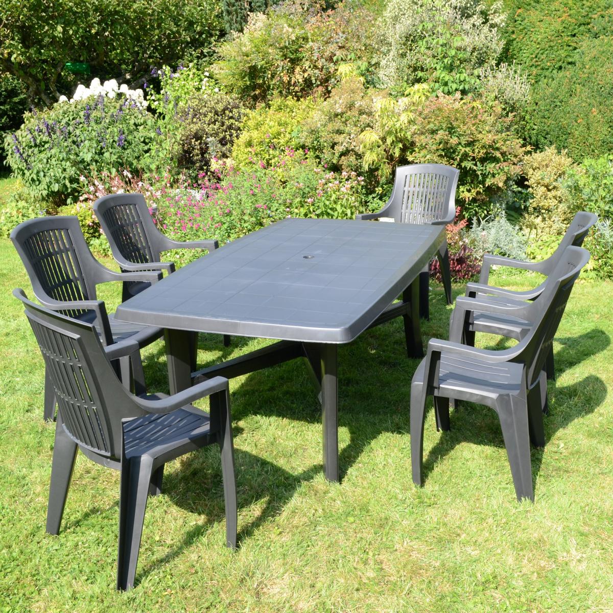 Trapani Table with 6 Parma Chairs Set Anthracite Grey