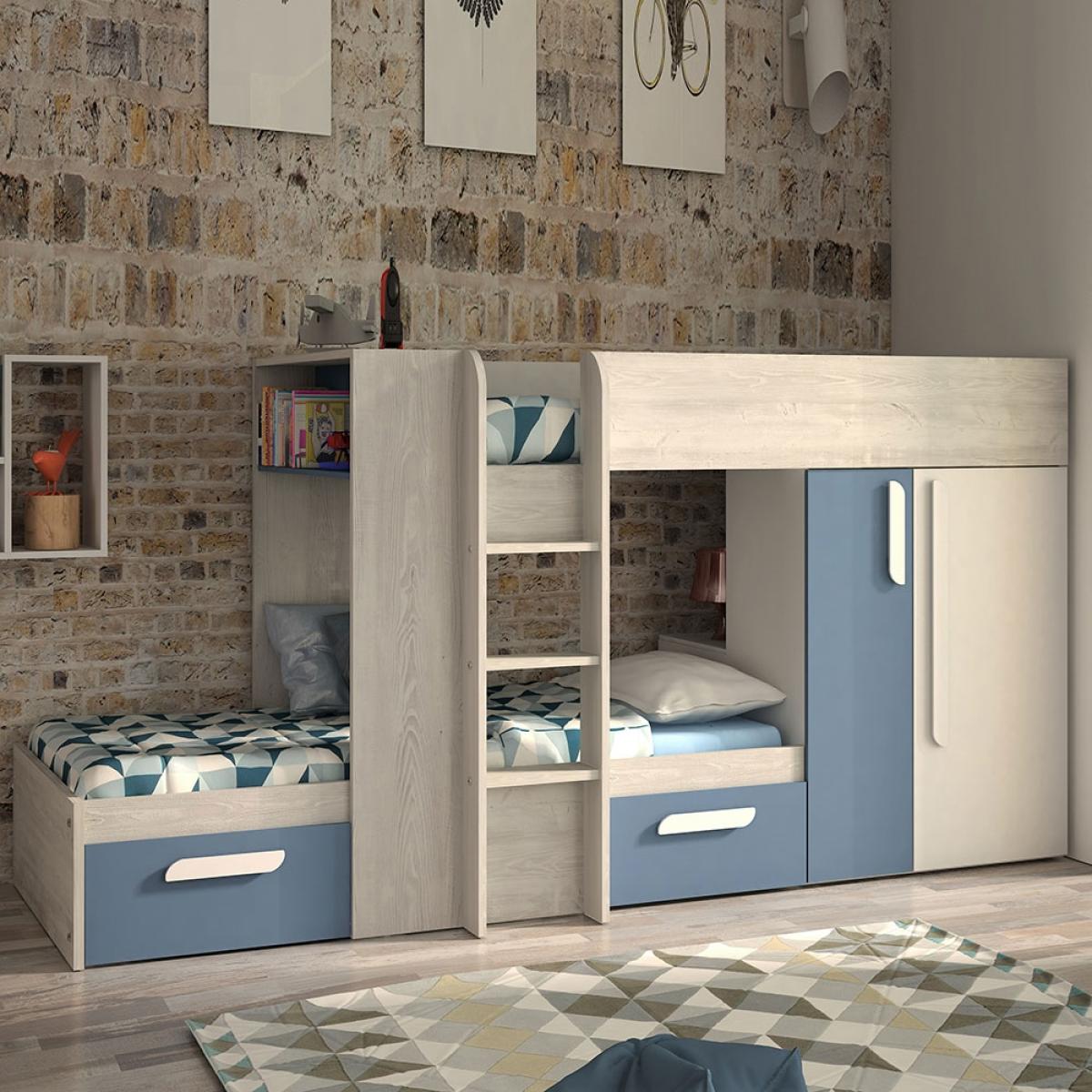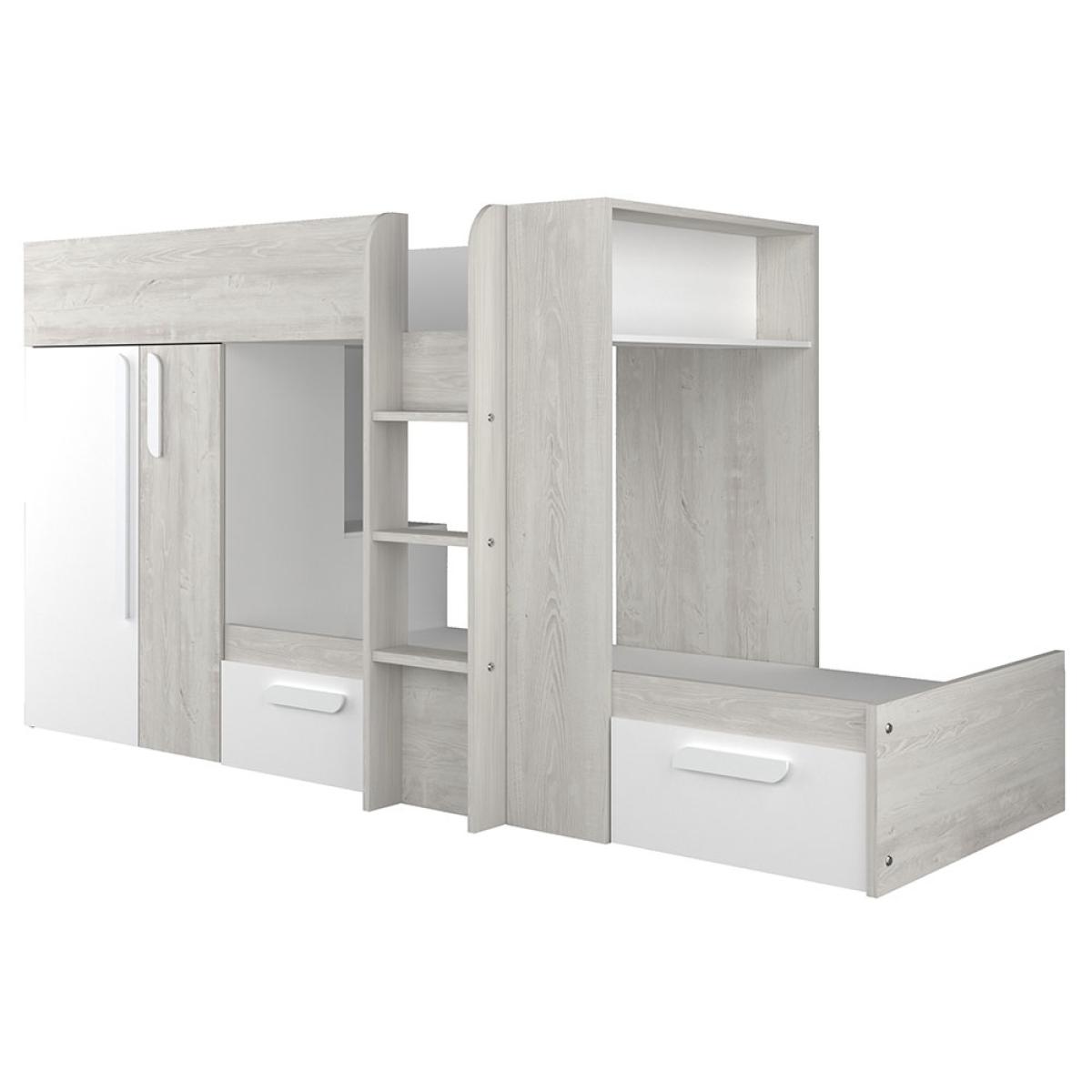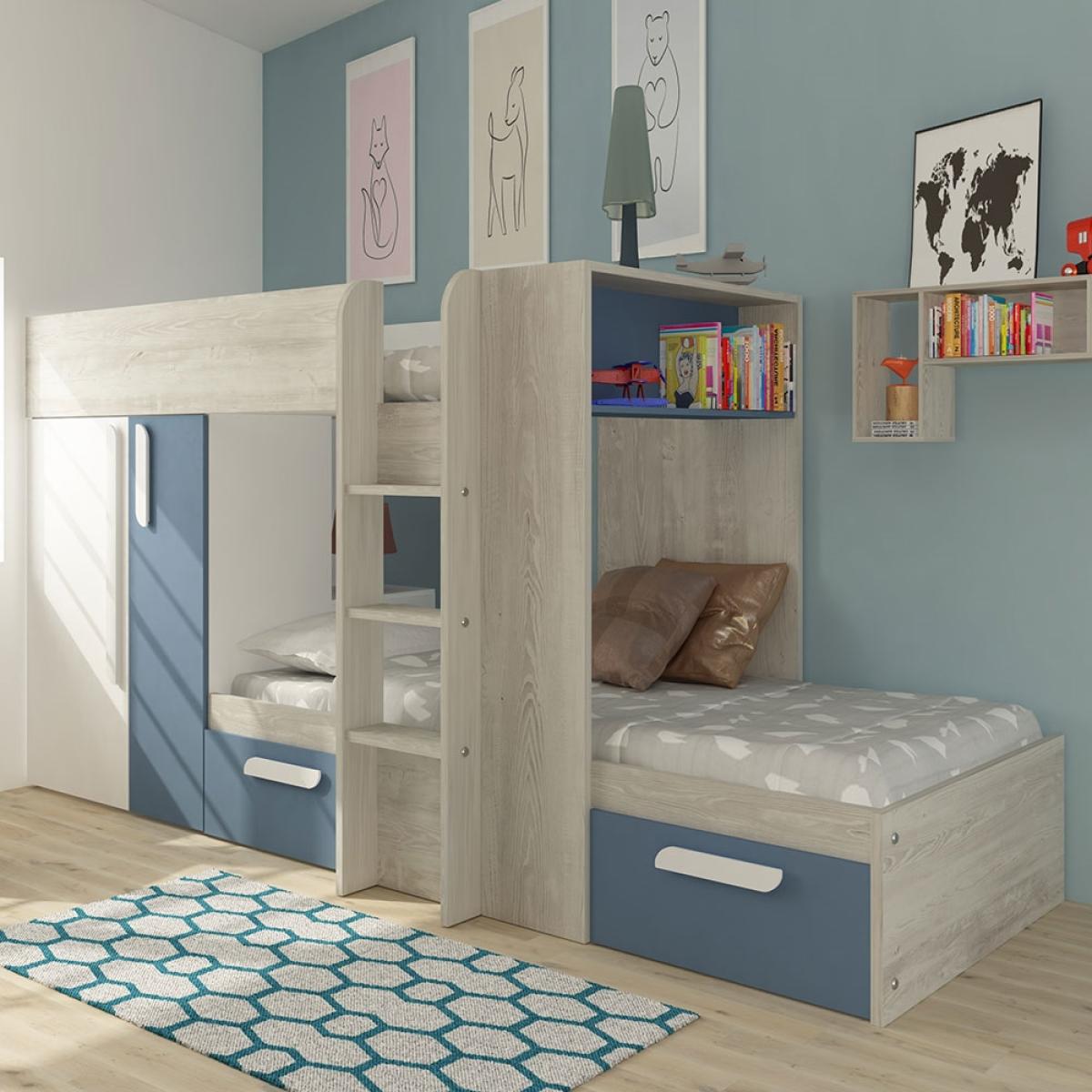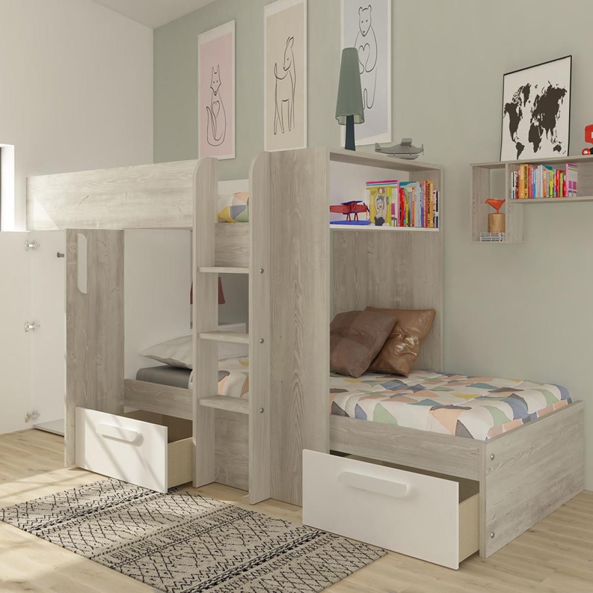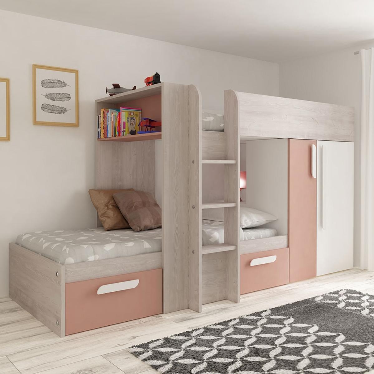 Storage, storage and more storage; the Trasman Barca Bunk Bed with Wardrobe is one amazing bed! The reversible design means it will work in almost all bedrooms! Helping save on floor space, the double wardrobe opens out to reveal shelving and a clothes rail. The storage shelf is perfect for displaying books and trinkets. And with 2 pull-out storage drawers there's plenty of space for extra clothing and bedding. Designed to create 2 separate cosy sleeping spaces, there is plenty of privacy for each child making sharing a little easier. There's even space for a lamp on the bottom bunk - perfect for night time reading. Available in a choice of colours, all with a wood effect finish, this scandi-style bunk bed would be perfect for growing kiddies. With other configurations available in the Trasman collection, select the bed to suit your needs!.