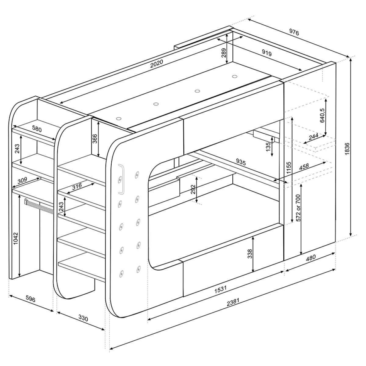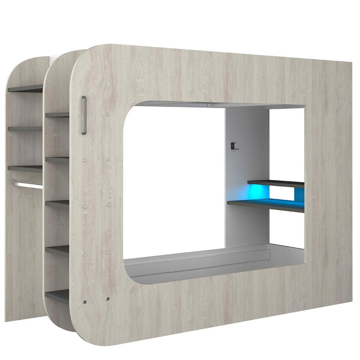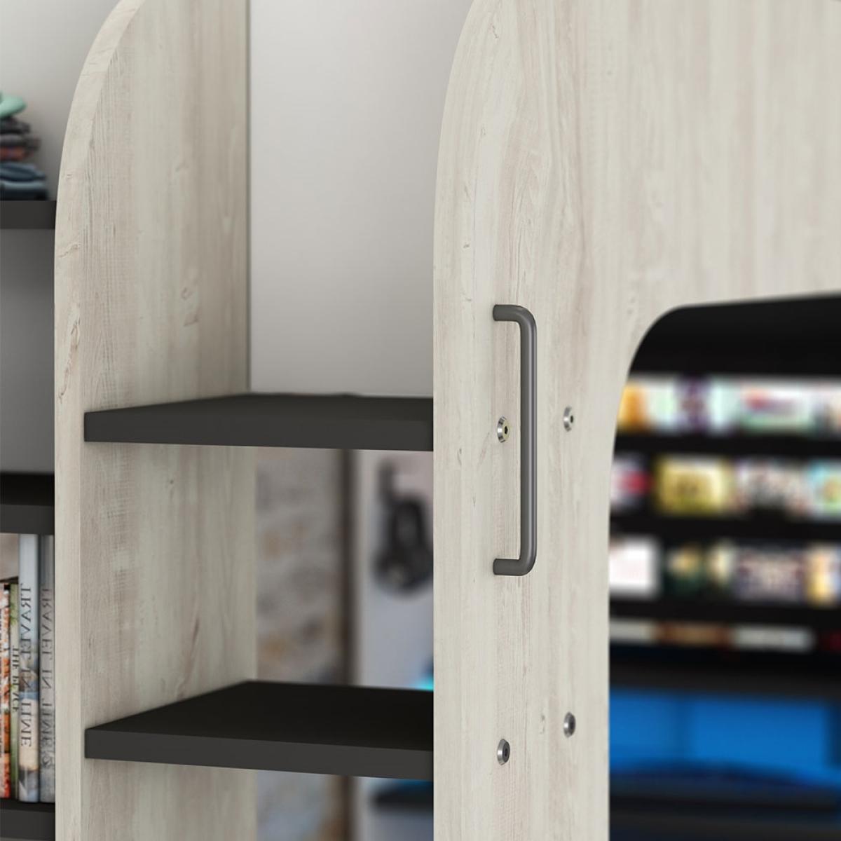 Your teen's jaw will drop when you surprise them with the Trasman Pod Solo 3 Gaming Bed! Packed with modern features, they can work, rest and play, all in one space. Built into the single loft bed - the height adjustable gaming desk can fit a 32 inch screen! With a shelf below - keyboards, speakers, consoles and accessories all have a home and their headsets can live on the metal hook to the side. Their discs, DVDs and figurines can be organised on the shelves at the end of the bed, along with their tees and trainers just below. Creating a fully immersive experience, the colour changing LED lights assist their gameplay and get them in the zone! And finally, add the optional wireless charger to complete their setup! With a bed this awesome, we guarantee parent of the year award will be coming your way!.