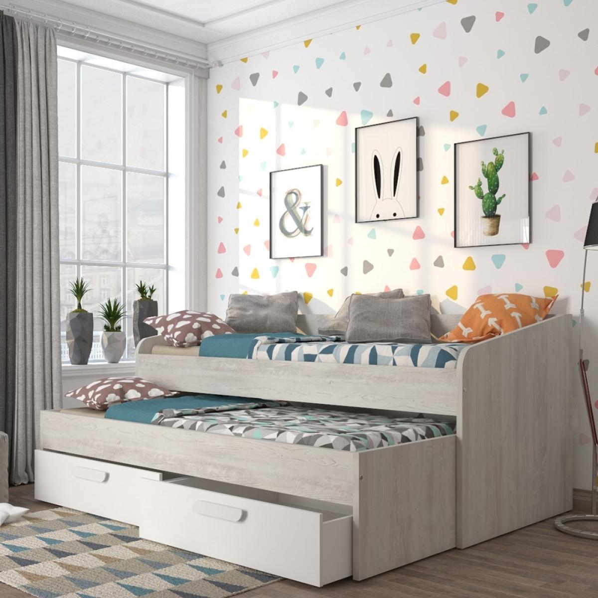 The Terrassa Day Bed from Trasman is the perfect sleepover bed! Complete with a pull out trundle and two large storage drawers, getting sleepover ready has never been so easy! Finished in white and a cascina wood effect, it will add a stylish, modern touch to any room and is sure to last your kiddie through childhood and beyond. Not only a great place to sleep, this bed is also great for lounging. Scatter a few cushions and grab a cosy throw, it's ideal for watching a film or reading. Then by night tidy the cushions and the throw away in the storage to get a good nights sleep!.