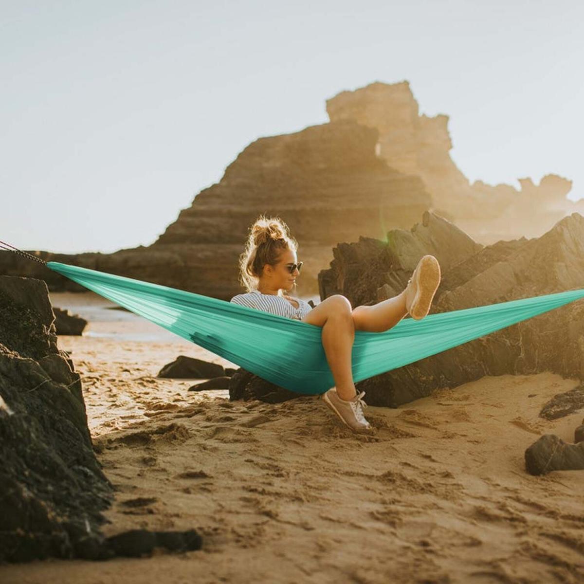 I love this travel hammock set for its simplicity and versatility - it’s perfect for adding a relaxed, informal touch to both indoor and outdoor spaces. Its plain design makes it easy to incorporate into various interiors, from boho patios to minimalist sunrooms. For styling, consider hanging it from ceiling hooks or sturdy trees to create a cosy nook, and pair with cushions or throws in complementary colours to enhance comfort. Its lightweight nature means it’s ideal for small spaces or portable retreats, making it a practical yet chic addition to a lifestyle that values relaxation and ease.