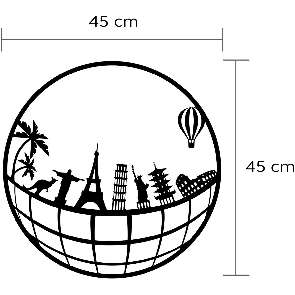 Introducing our "Travel" Metal Wall Art, a captivating addition to elevate your home decor. Measuring 45x45 cm, this black metal wall hanging features iconic landmarks from popular cities around the world, bringing a global vibe to your space. Crafted from sturdy yet lightweight metal, it's easy to assemble and arrives in secure packaging. Whether for your home or office, this unique metal wall art embodies the essence of wanderlust and adventure, showcasing a collage of renowned city artefacts. Elevate your surroundings with "Travel" and create a focal point filled with the excitement of exploring new horizons. Order now to infuse your space with the spirit of travel and cultural diversity!