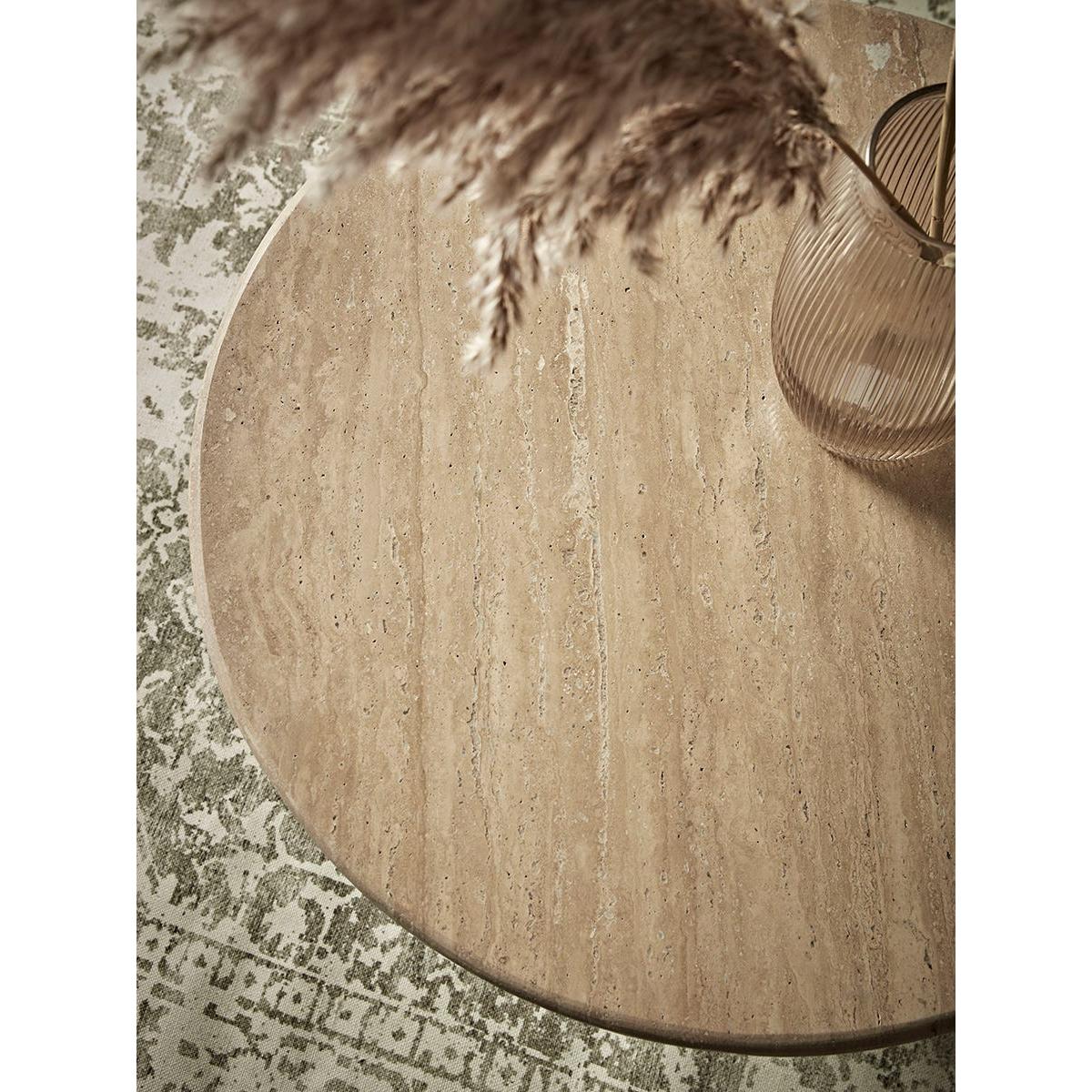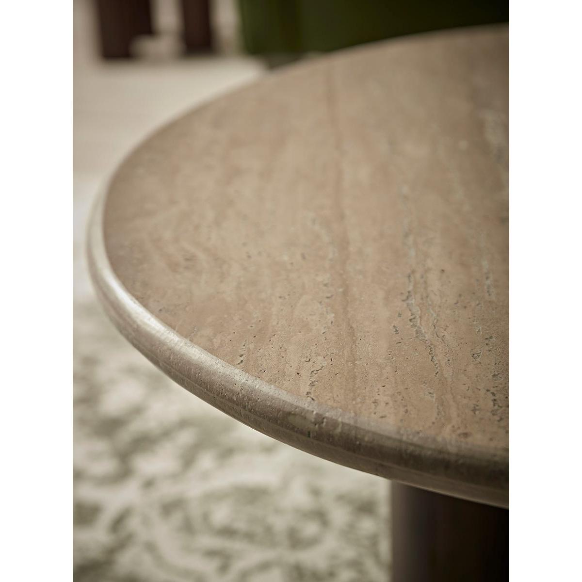I love this travertine coffee table for its versatile, understated elegance. Its neutral tones and textured surface make it a great anchor piece in both modern and transitional interiors. It works particularly well in pared-back schemes with natural materials, or in a more eclectic setting when styled with bold books, ceramics, or lush greenery. Practical styling tips include keeping the surface relatively clear to highlight its natural beauty, or layering with a few curated accessories to add visual interest without clutter. Its sturdy, chunky base also means it’s ideal for casual, everyday use while adding a sophisticated touch to your living space.