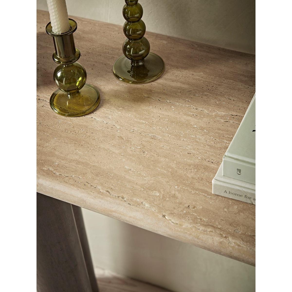 I love the Travertine console for its versatile and understated aesthetic, making it a perfect addition to both contemporary and traditional interiors. Its neutral, earthy tones and simple silhouette allow it to work well in hallways, living rooms, or even bedrooms, adding a sophisticated yet relaxed vibe. Practical styling tips include using the surface for organising everyday items with baskets or trays, or displaying decorative accents like vases, books, or lamps to create visual interest. It pairs beautifully with natural textures and greenery, helping to bring a calm, organic feel to any space.