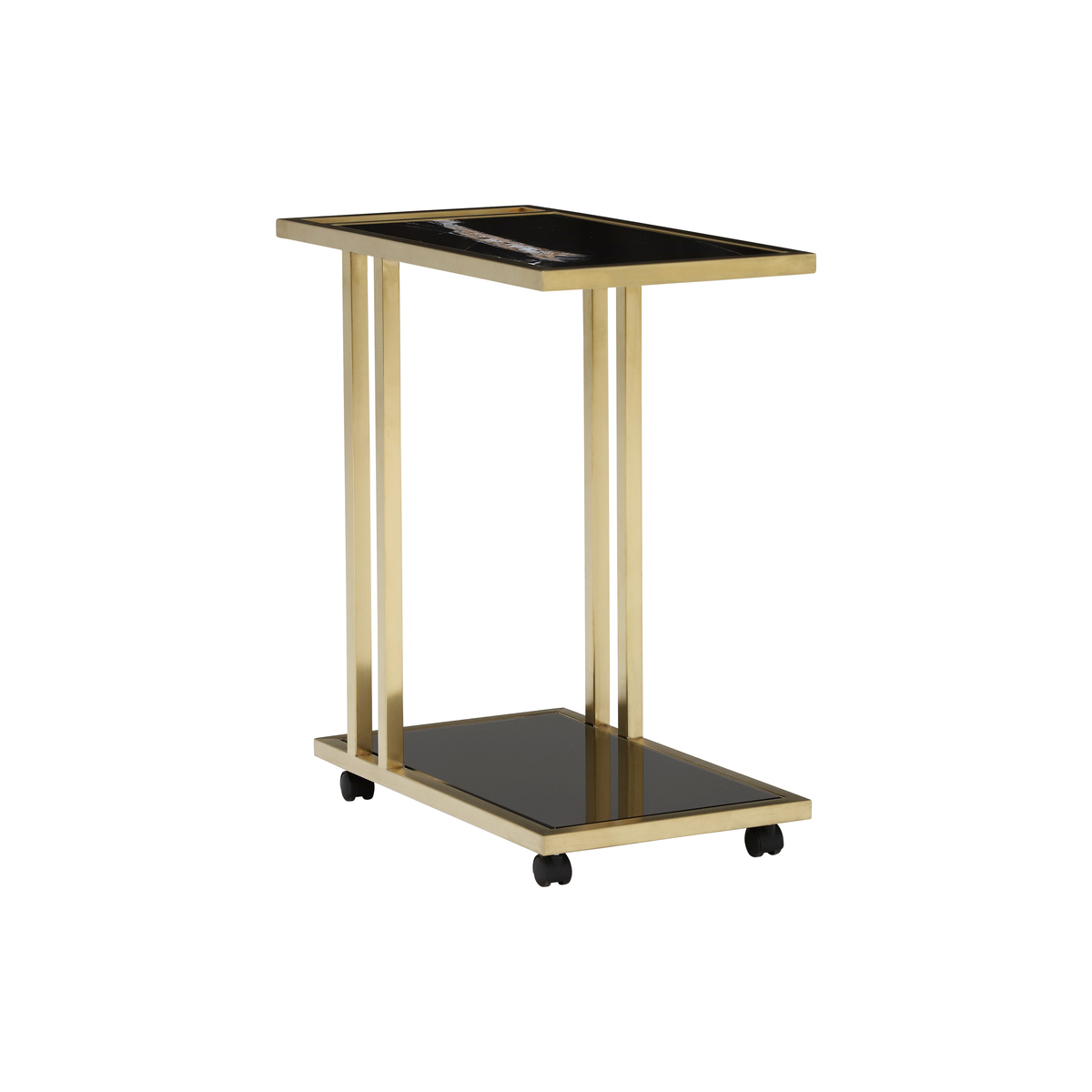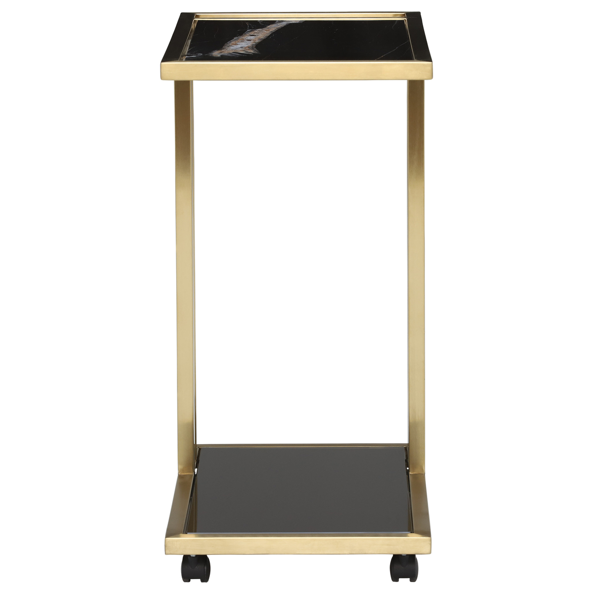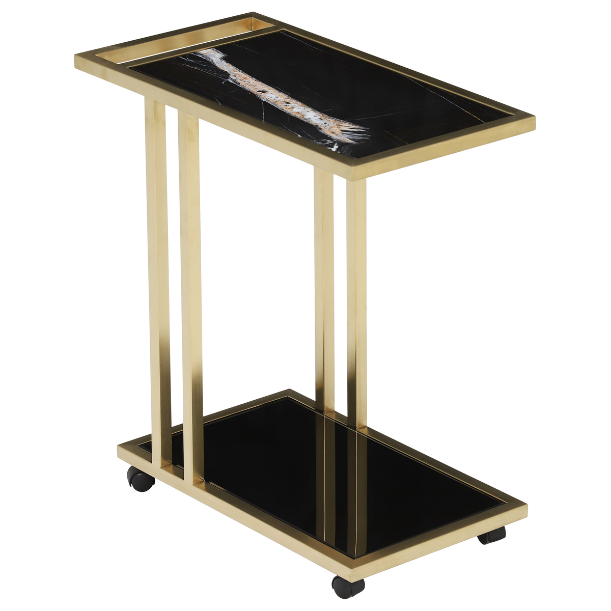 Combining form and function the Tray Marble Accent Table has been expertly crafted using solid marble and polished brass metal, perfect for adding a touch of luxury to your living space. The caster base allows you to easily manoeuvre the table whilst providing an additional surface allowing you to keep your cup of tea and favourite book close by.