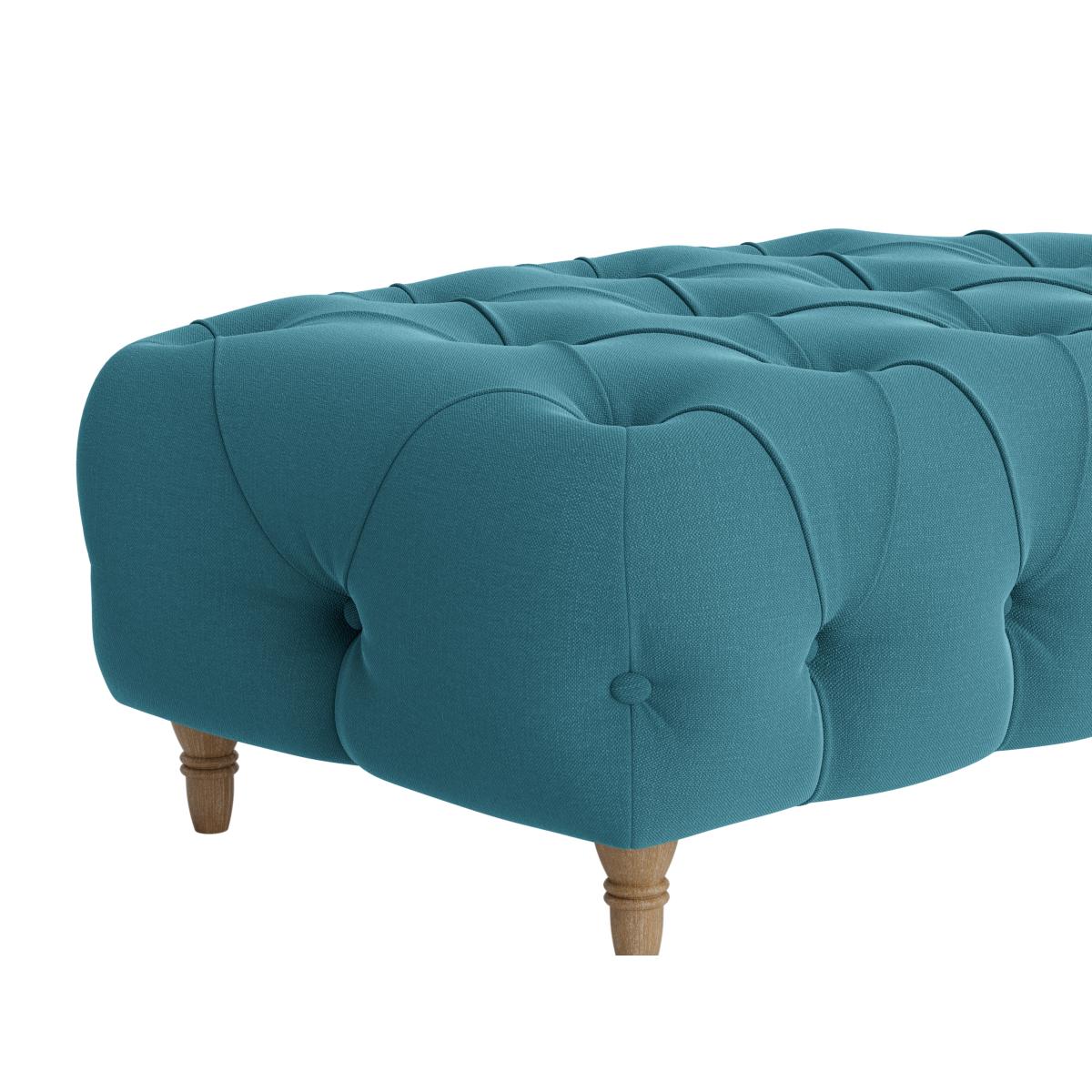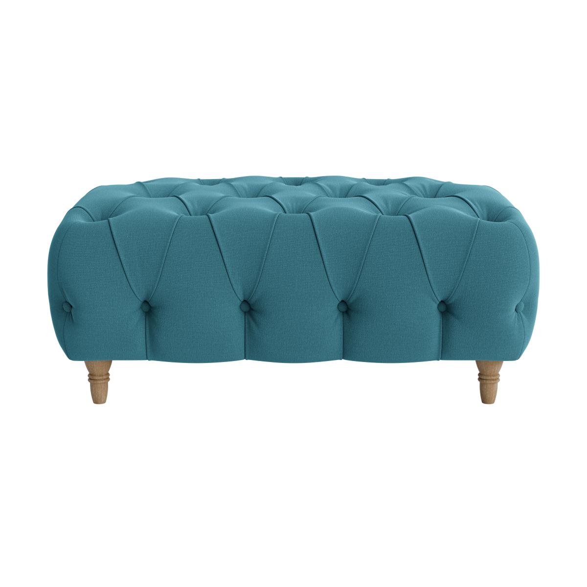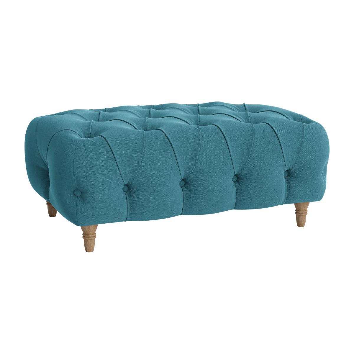 I love the way this footstool brings a pop of colour and a touch of luxury to a room, making it a versatile piece for both contemporary and traditional interiors. Its tufted design lends a classic feel, while the vivid blue shade adds a fresh, modern twist. It works especially well in living rooms or bedrooms with neutral palettes, offering a comfortable spot to put your feet up or to serve as extra seating. For styling, pair it with a neutral sofa and layer with textured cushions or throws to create an inviting, relaxed vibe. Its compact size makes it practical for small spaces or as an accent piece in larger rooms.