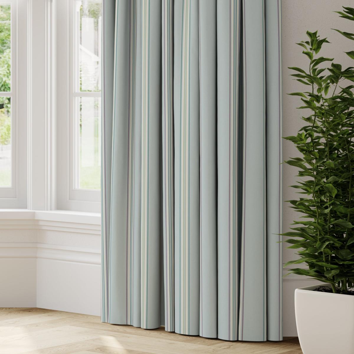Reveal in the sophistication of our Treasure Pattern Made to Measure Curtains. Meticulously crafted from fire-retardant fabric and lining, these curtains effortlessly bring a natural look and feel without compromising on drape and quality. Individually tailored to your unique measurements and showcasing a contemporary striped design, this classic stripe in a modern colorway provides a timeless look for any room setting. The colourway presents a delightful mix of colours that seamlessly complements various room settings. Explore various header types to suit your style. These made to measure curtains are available in a range of colourways to choose from, so you might be spoilt for choice! Proudly made in the UK, they redefine quality and craftsmanship. Available in a range of headers, these bespoke made curtains can be paired with our matching Made to Order tiebacks and cushion covers to give your home, office or commercial space a beautifully coordinated finish. Book an appointment with one of our expert consultants who will guide you through the process of creating your very own Made to Measure Curtains. *If you are unsure on testing requirements for your chosen environment, check with a qualified fire officer what testing is required & that this meets your needs. Suitable for domestic or commercial use. Please note that the guarantees shown are for domestic, non-commercial use only. Please note: If your measured width is over 124cm your curtains will come with a fabric join to provide the full width required.