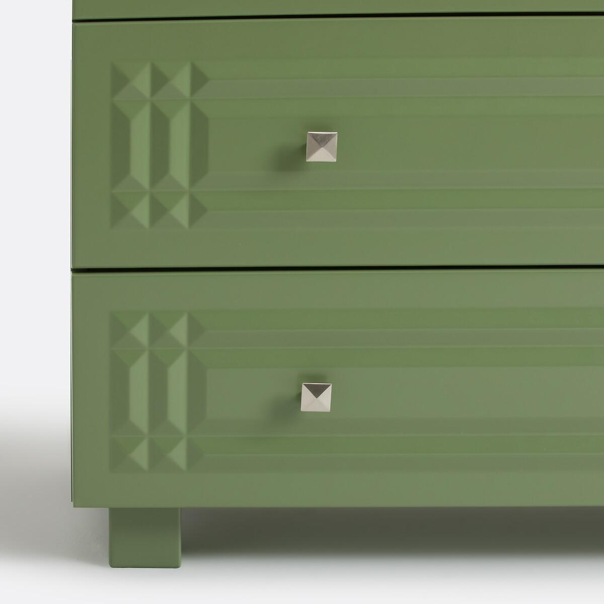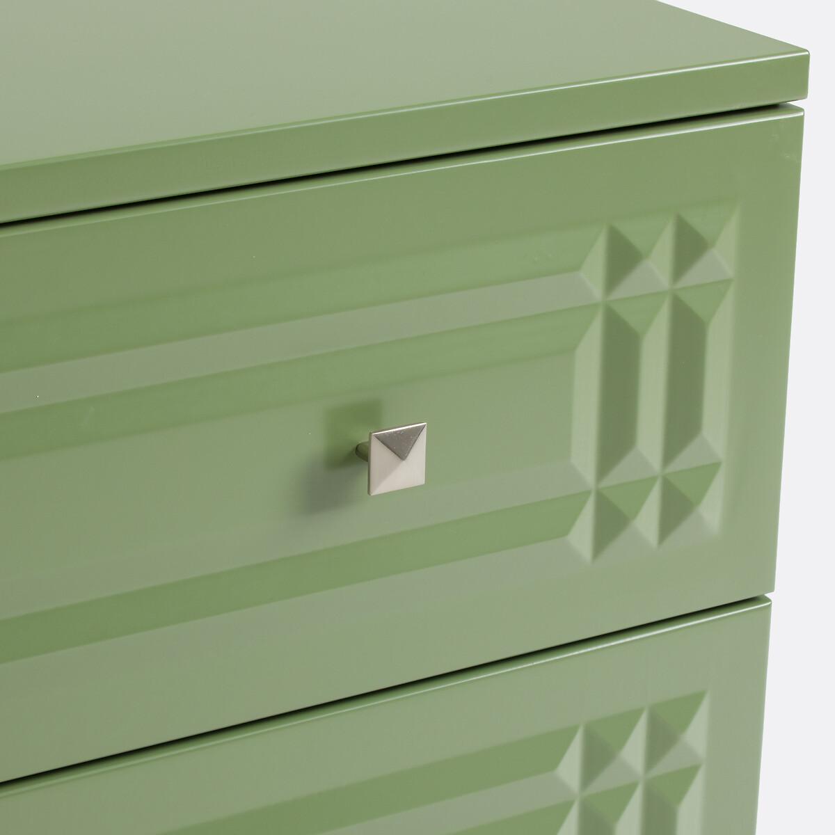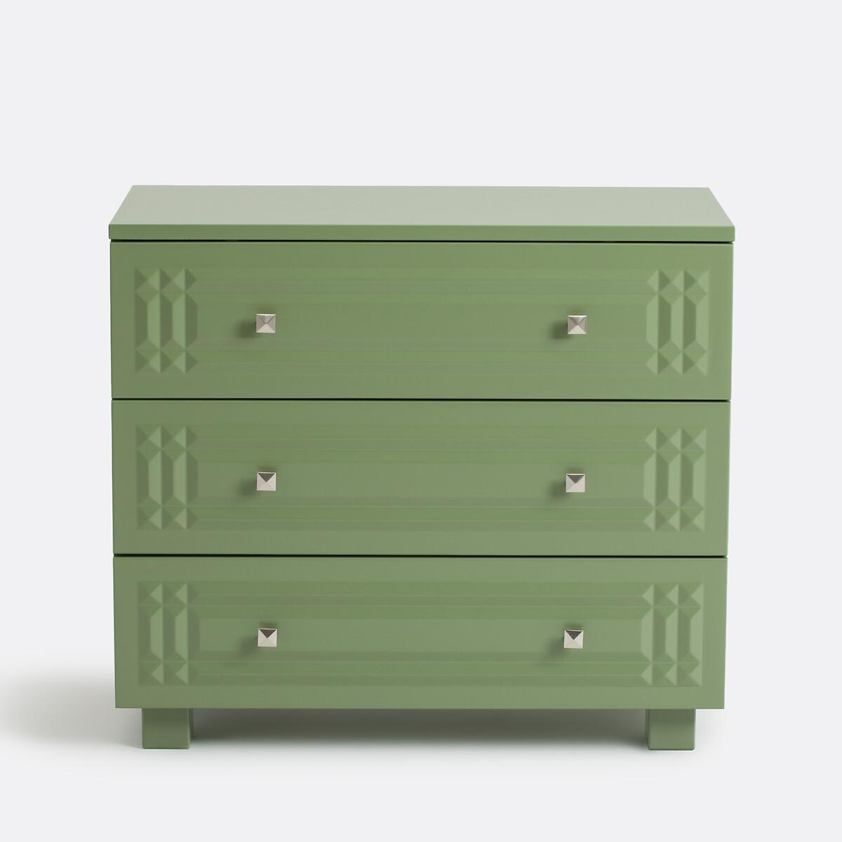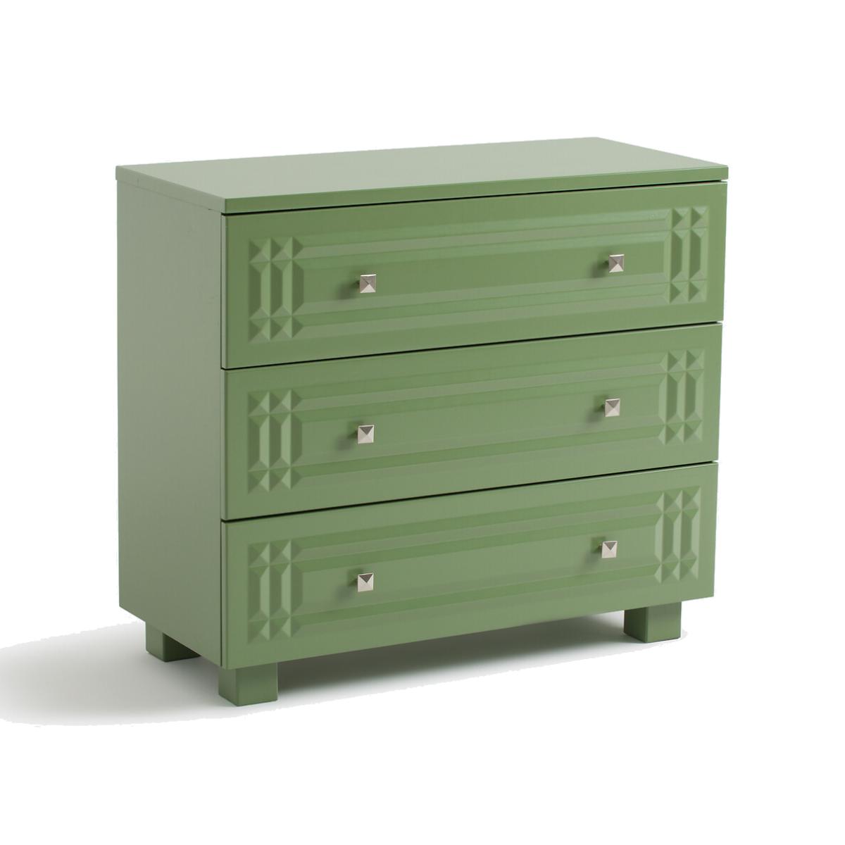 Shaped drawers. Faceted handles. Introducing Treda, the chest of drawers that revisits classic looks, but with a seriously modern twist, in green lacquered wood. Designed by La Redoute Intérieurs. Product Details • Structure in lacquered MDF wood fibre • 3 drawers • 6 faceted silver-plated steel handles • Pine legs Dimensions Overall • Width: 100cm • Height: 88.3cm • Depth: 44cm • Weight: 47.6kg. Usable space • Drawer:L90.8 x H25 x D33.8cm • This product requires assembly. • WOOD FROM SUSTAINABLY MANAGED FORESTS. FSC® certified wood comes from forests that are environmentally, socially and economically well managed. Dimensions and weight of parcel2 parcels • L112 x H21.5 x D52cm. 30kg • L112.5 x H16 x D52.5cm. 24.7kg