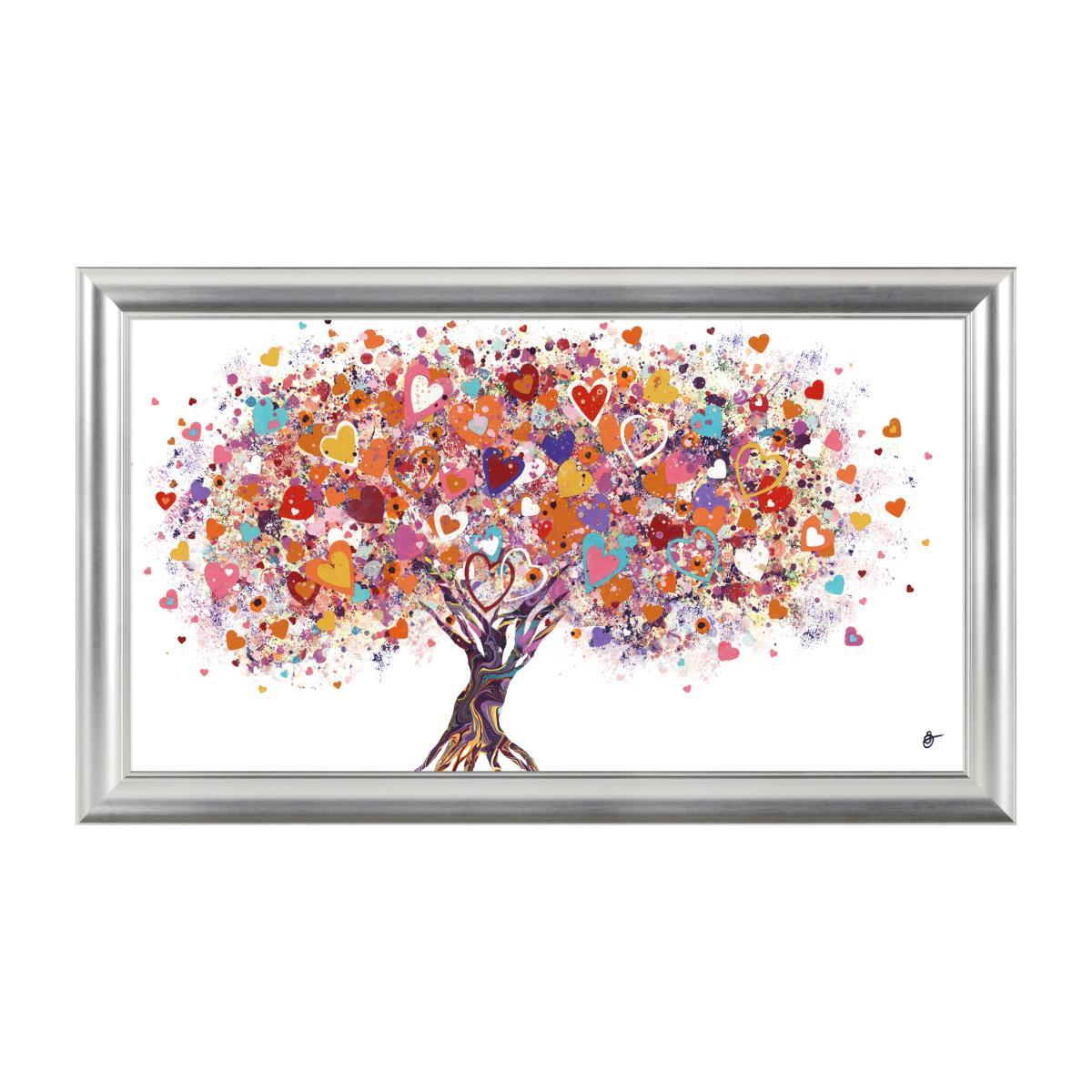 With its vibrant colour palette and fluid lines, our Tree of Hearts framed picture is a charming depiction of the blossoming nature of true love. Why you'll love it This modern framed picture blossoms with love. Lustrous heart details are rendered in the most vibrant colour palette. Reproduced from original artwork by Sara Otter. Elegantly enclosed in a contemporary silver frame. This framed picture is part of the Funriture Village home accessories collection. What you need to know A paper print on an MDF back board. Metal hanging fitting with a nylon cord. Hand- finished with an acrylic varnish. Dimensions:Height: 73 cm (29 in). Width: 123 cm (48 in).