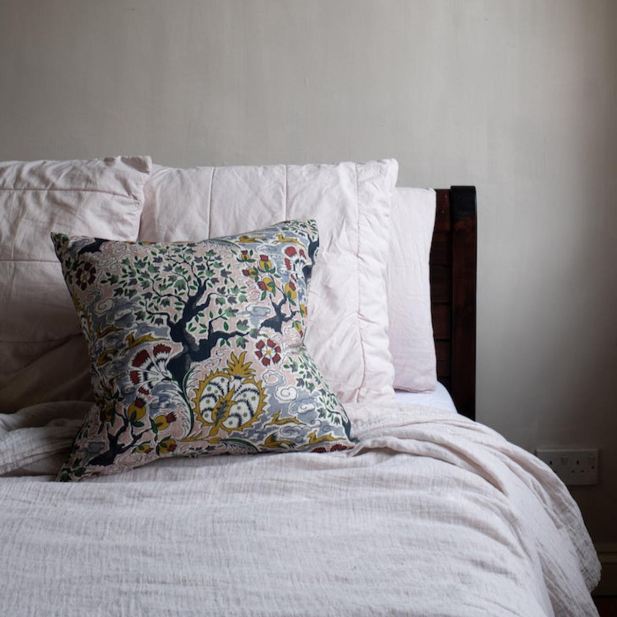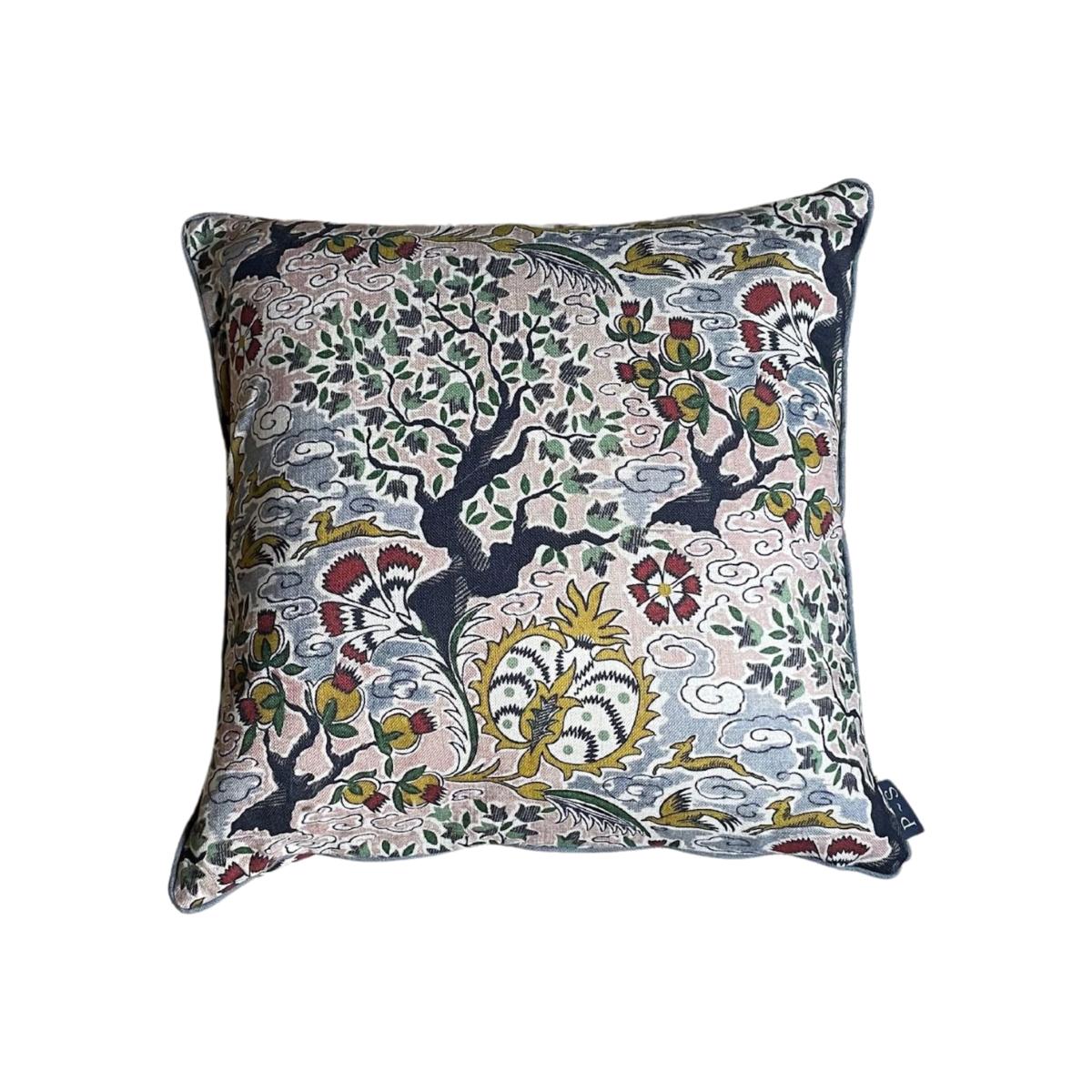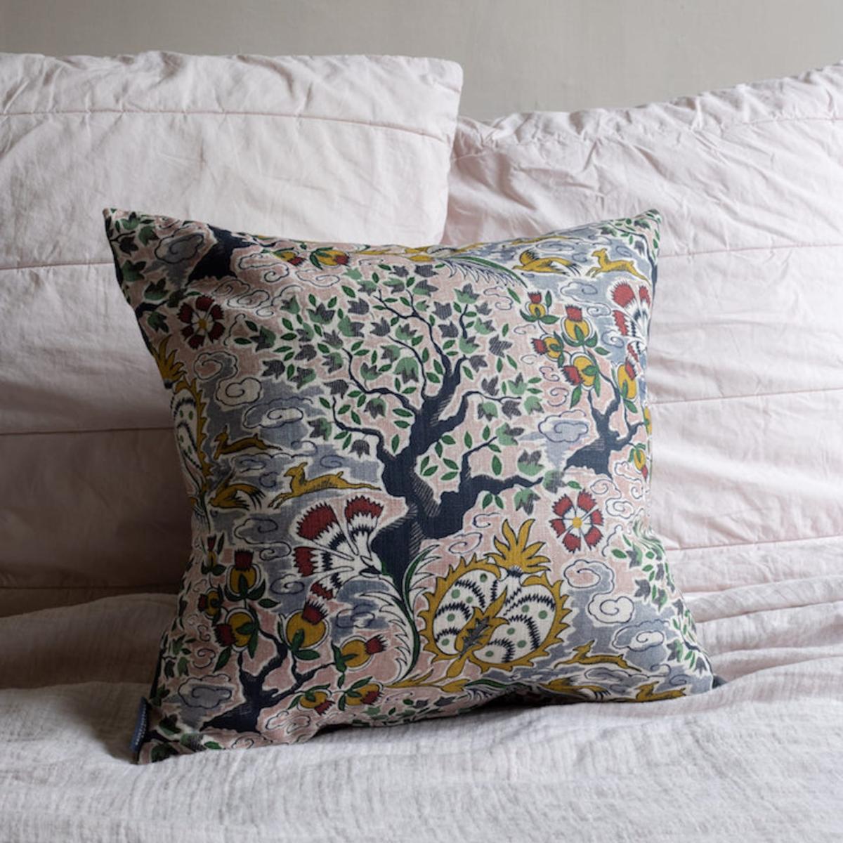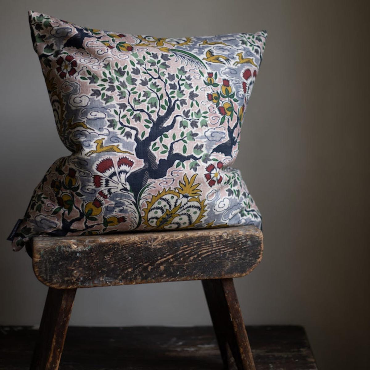 Tree of Life Eden One of our most popular prints has now been made into a luxurious cushion for your home. The pomegranate fruit is symbolic of fertility, beauty & eternal life and can be found on the abundant Tree Of Life. Originally designed in 1929, this French textile design is truly alive with symbolism and good fortune. This original screenprint has been lovingly restored and digitally reproduced using ethically sourced materials.