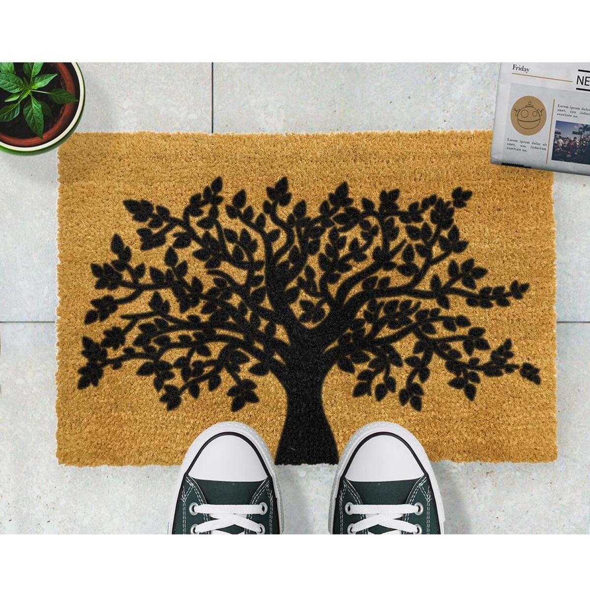 I love this doormat because of its striking black tree design against the natural coir, making it a stylish yet practical addition to any entrance. It works particularly well in contemporary or minimalist interiors, offering a bold visual that can complement neutral colour schemes. For practical styling, place it on a light-toned stone or concrete patio to help it stand out, or pair with organic and natural materials inside, such as wood or rattan, for a cohesive look. Keep it clean by regularly brushing off dirt and only use it outdoors or in covered areas to maintain its appearance. This piece is a clever way to add visual interest and a welcoming vibe right at the front door.