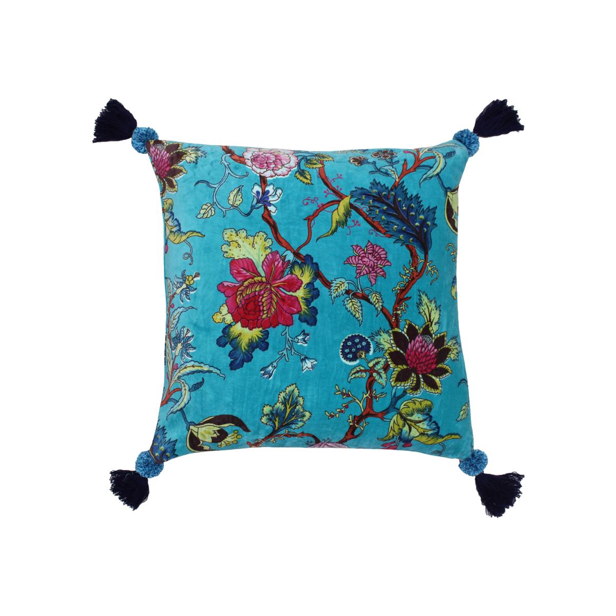 Tree Of Life Floral Cushion 50 x 50cm - Kingfisher / Feather